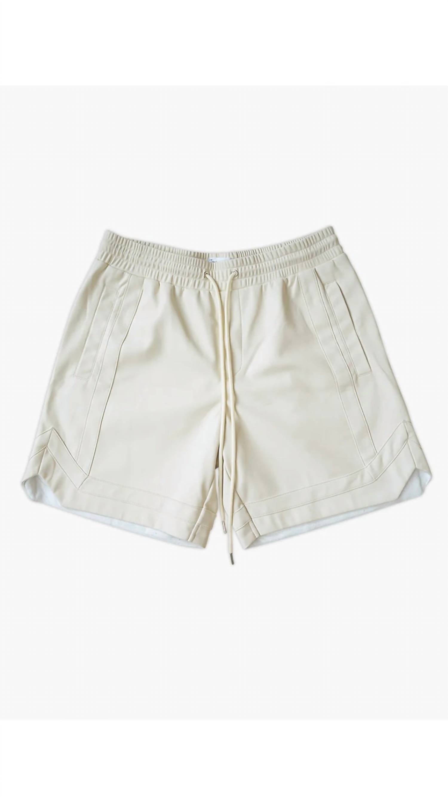 Meet the Courtside Shorts by EPTM, a must-have for your athletic wardrobe. These shorts, crafted from 100% polyester in luxurious vegan lambskin leather, offer a classic basketball silhouette with an elastic waistband and elongated drawstring for added sophistication. Enjoy optimal functionality with their practical side and back pockets. Pull on. Machine wash, tumble dry.