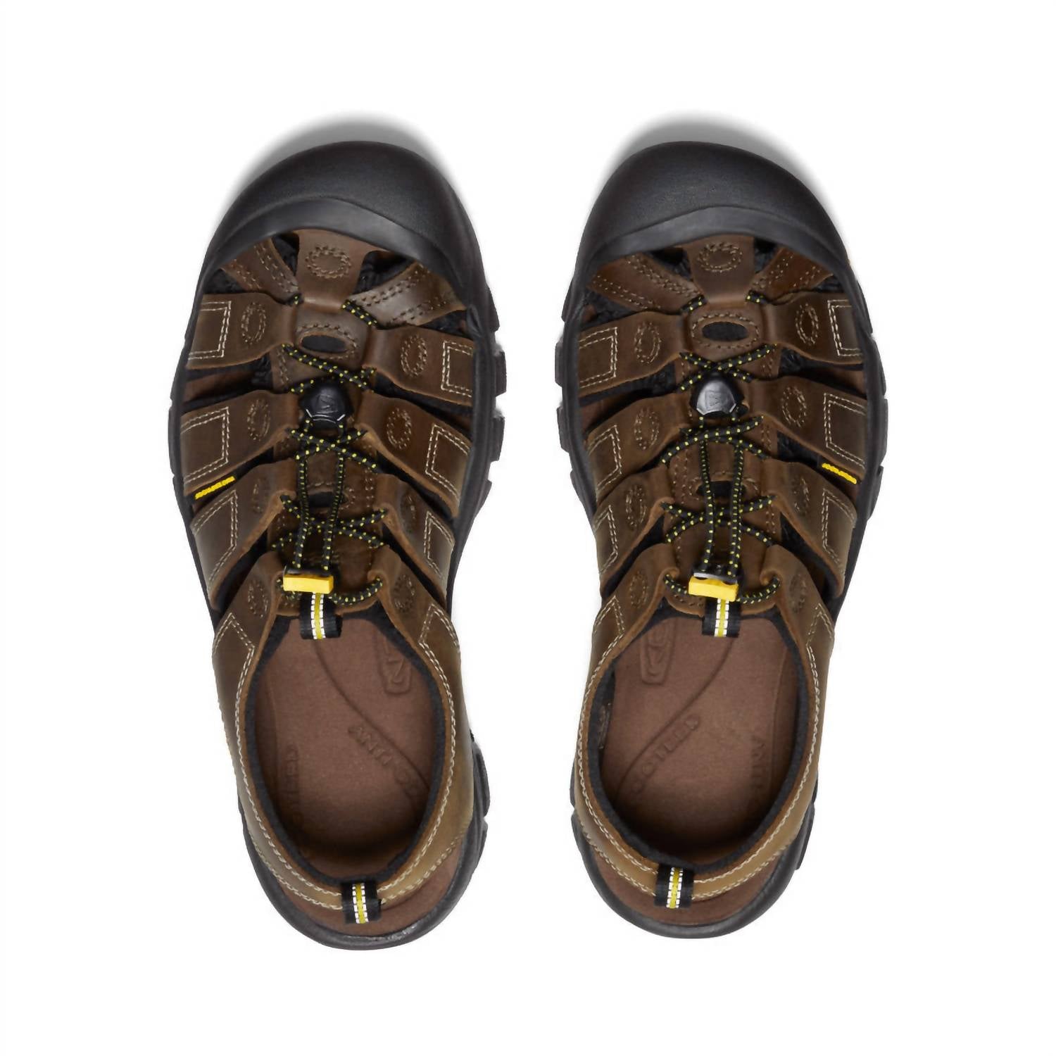 These sandals have a roomy toe box for natural toe movement and quick-pull bungee laces for easy on and off. They feature a lightweight cushioned midsole and a soft leather insole for extra comfort. The high-traction rubber outsole with a special tread pattern provides great grip on wet surfaces. Made with eco-friendly premium leather from a certified tannery, they also include natural odor control without pesticides.