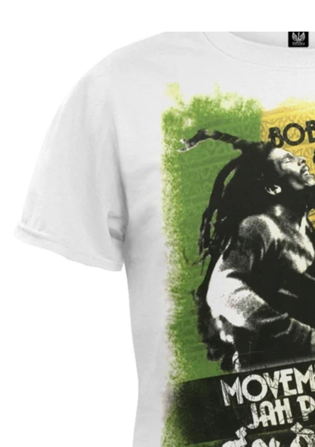 Introducing the Men's Movement Exodus T-shirt by Bob Marley, a stylish homage to the iconic 1977 Exodus tour. This short sleeve tee in crisp white features a striking graphic, perfect for music festivals or casual streetwear. Closure: Pull on. Care: Machine wash. Ideal for summer occasions, this crewneck T-shirt lets you sport your love for music in comfort and style.