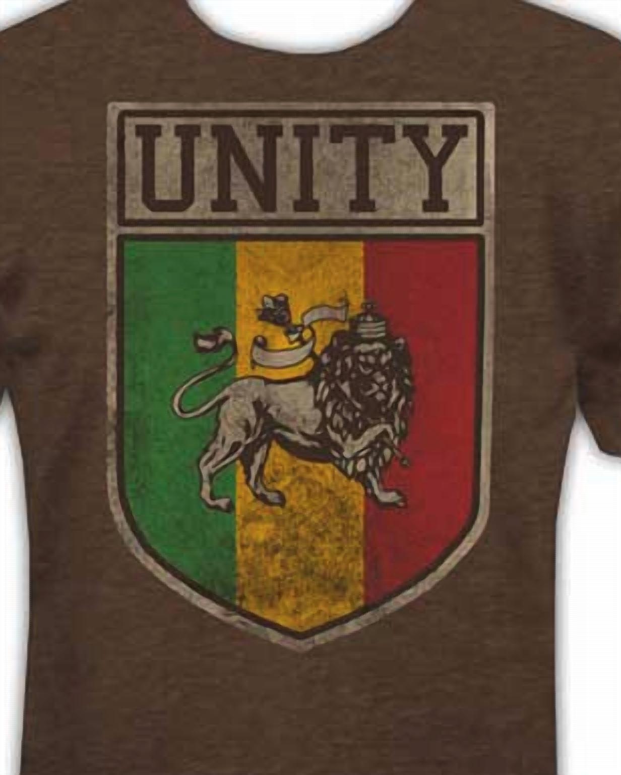Celebrate your roots with the Men's Unity Premium T-shirt by Bob Marley, crafted from 100% premium cotton for ultimate comfort in classic brown. This short sleeve tee displays a striking graphic design of the Lion of Judah, infused with a spirit of unity. It features a crewneck and a convenient pull-on closure, perfect for a summer streetwear look. Ideal for a holiday party or casual outing, this versatile tee speaks to your connection and style.