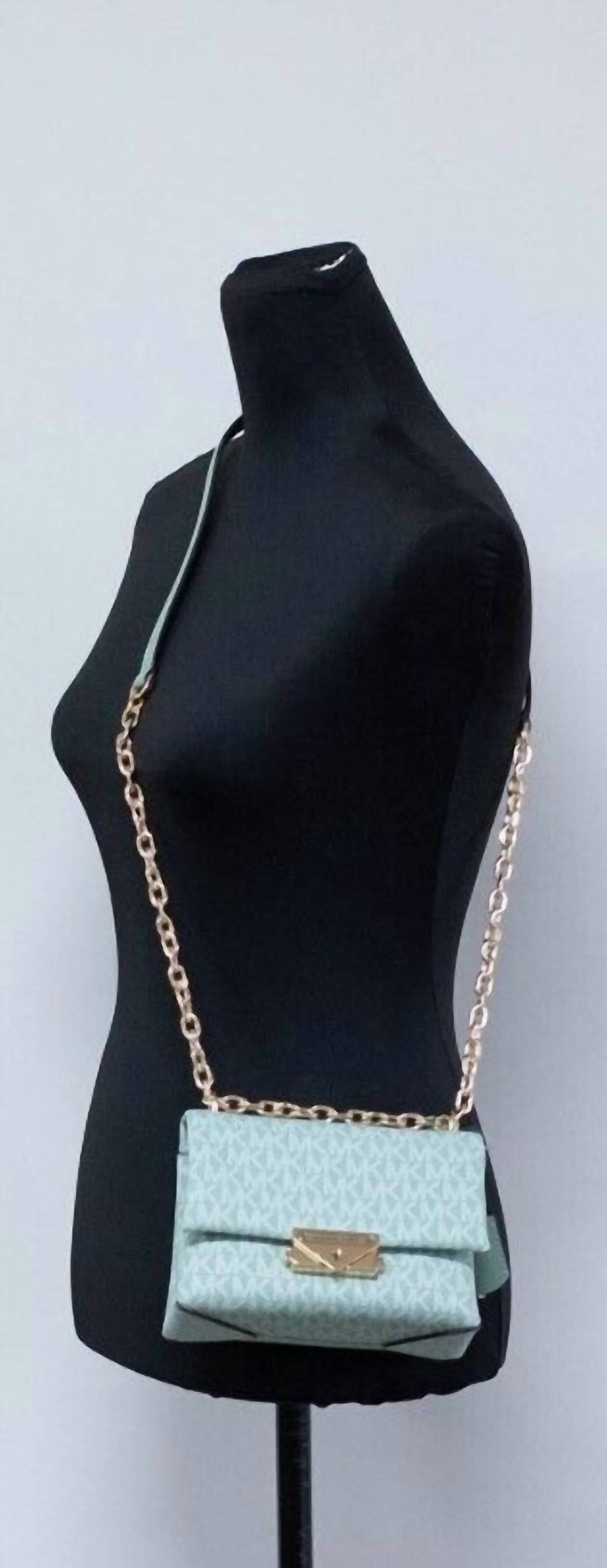 Apresentamos a Bolsa Transversal Feminina Cece Convertible Flap da Michael Kors, um acessório estiloso na vibrante cor Verde-Mar Multicolorido. Confeccionada em PVC exclusivo e couro macio, esta bolsa possui corrente ajustável e alça de couro para uso versátil na transversal ou no ombro. Inclui um prático bolso externo, dois compartimentos internos principais e três compartimentos internos para cartões, todos protegidos por um fecho de aba com fecho de pressão. Medindo 18,41 cm de largura, 12,7 cm de altura e 9,52 cm de profundidade, ela combina funcionalidade e elegância.