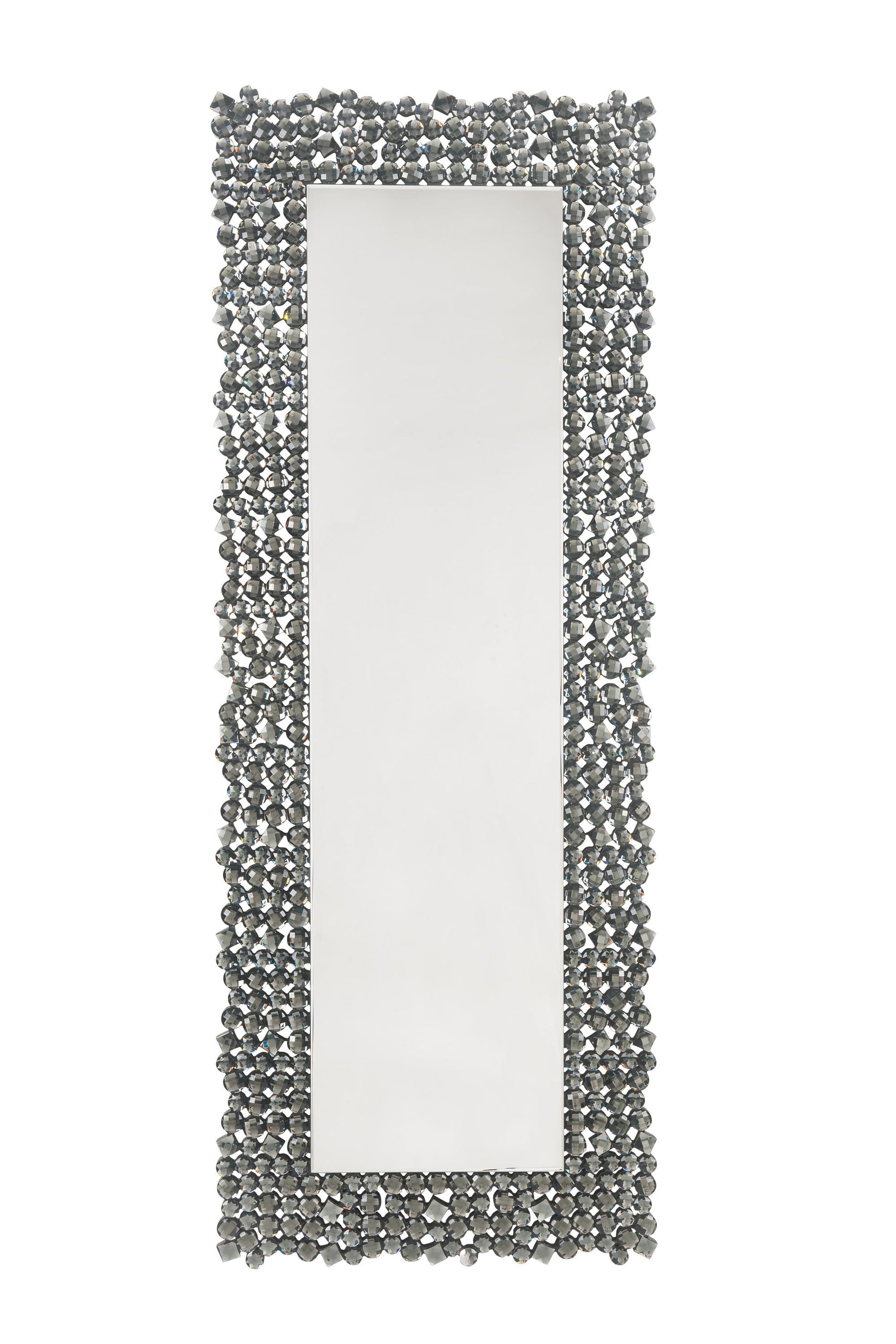 - Constructed from mirror glass, MDF, and adorned with faux gems