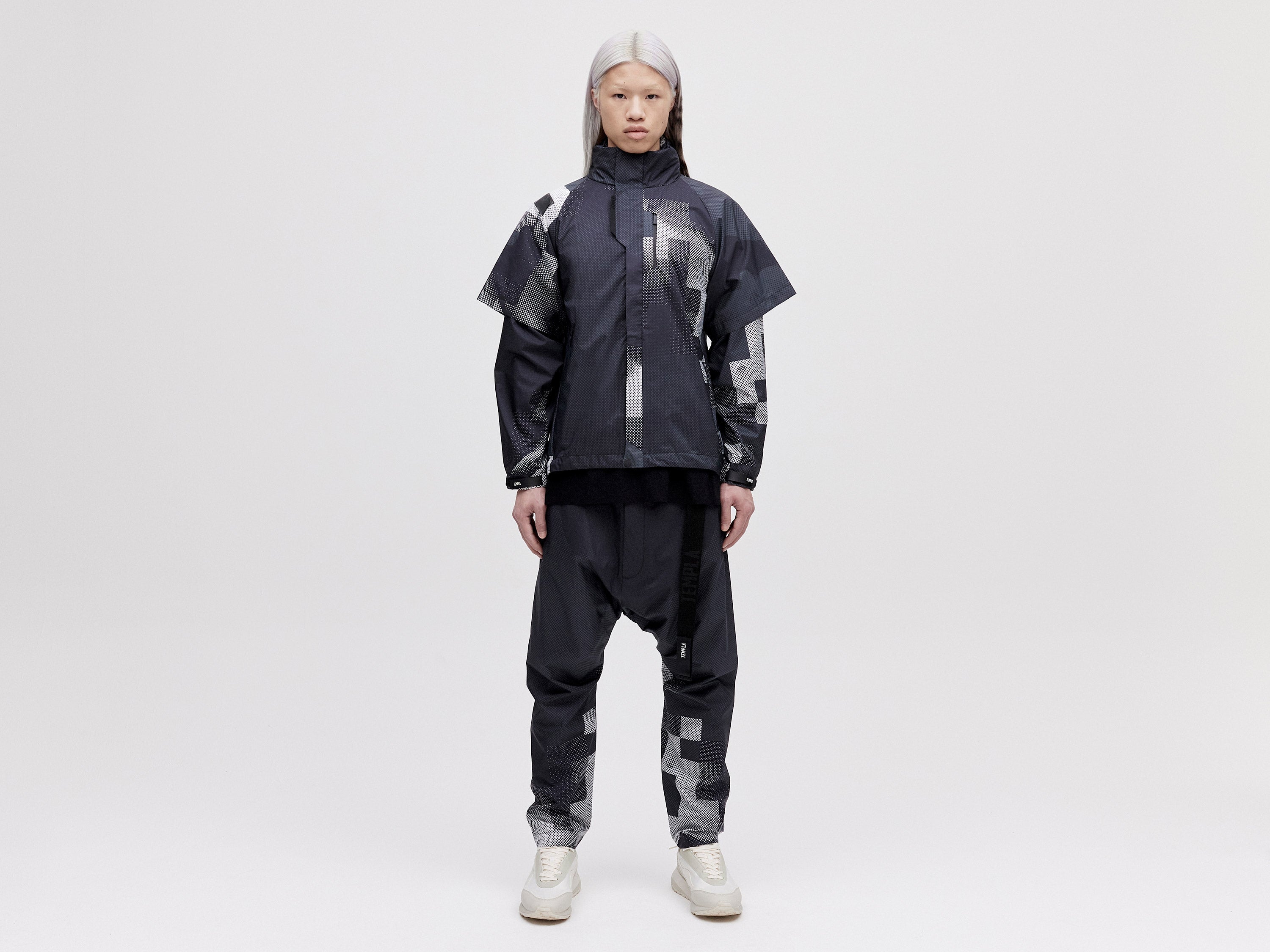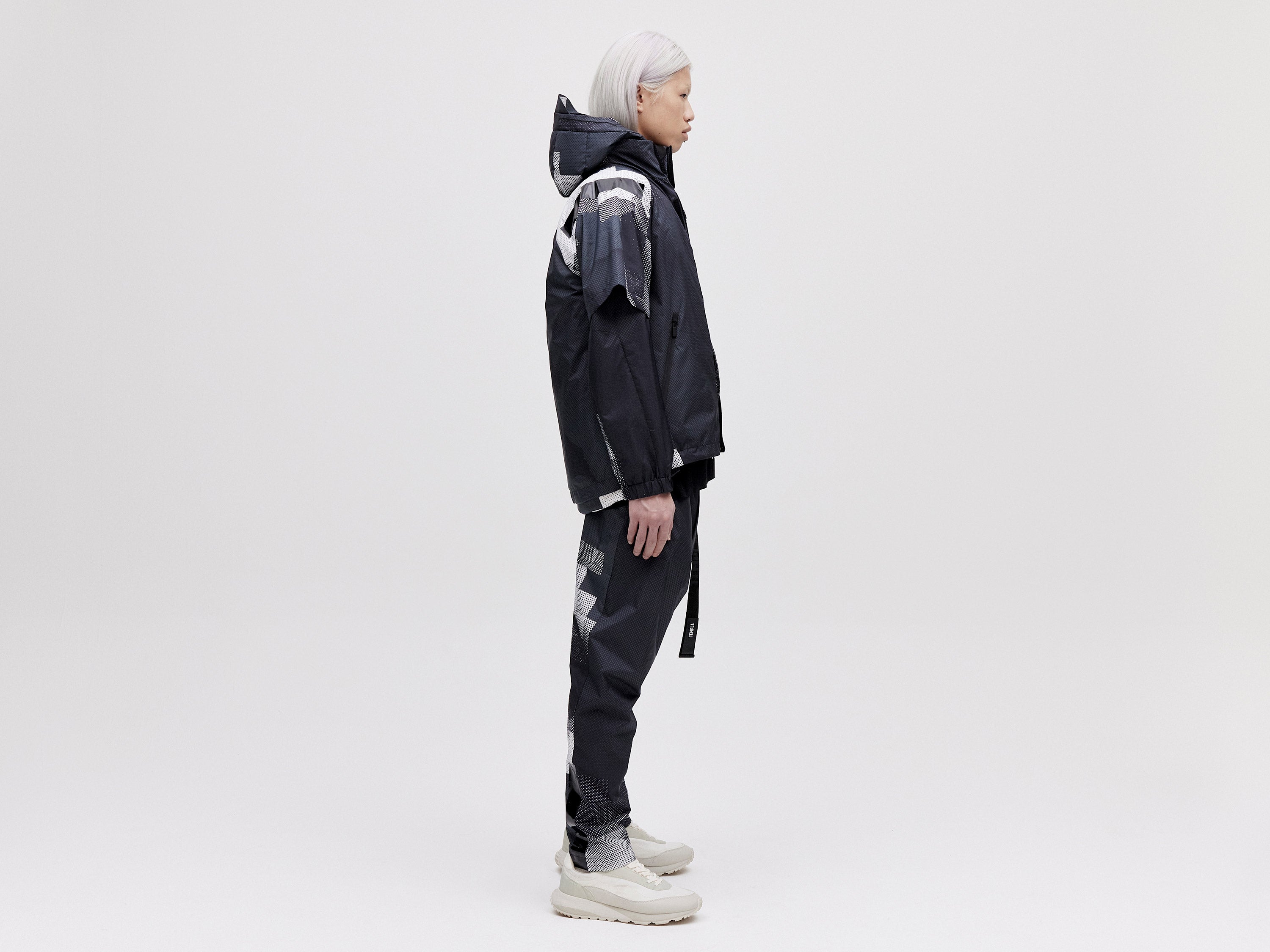 A lightweight all-weather shell jacket featuring a packable hood and ventilated armholes. Our Layered 2L Jacket is designed to fully integrate with our Modular Down Vest. Simply zip the jacket onto the hidden zips of the front placket of our Modula Down Vest for added warmth and protection against the elements.