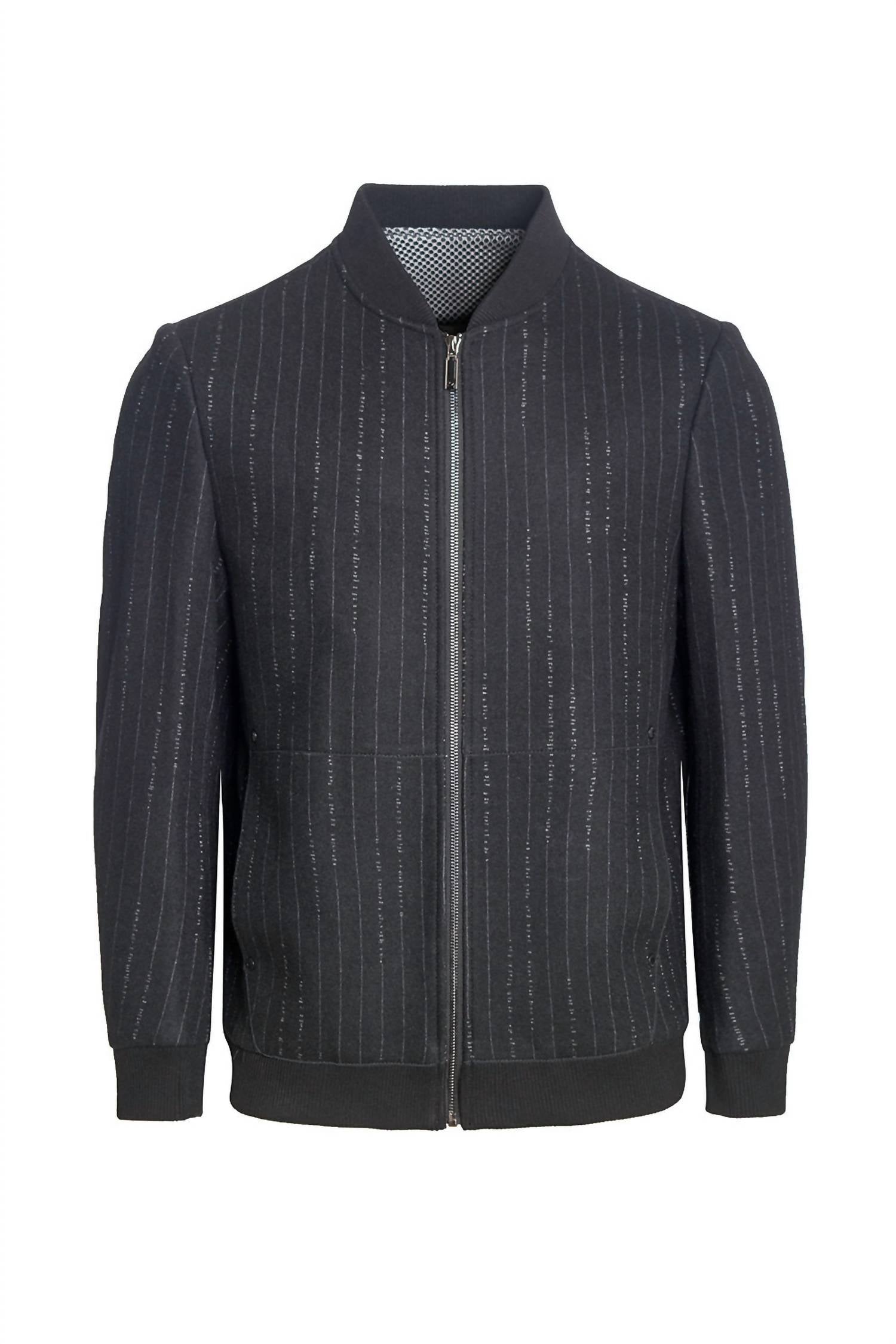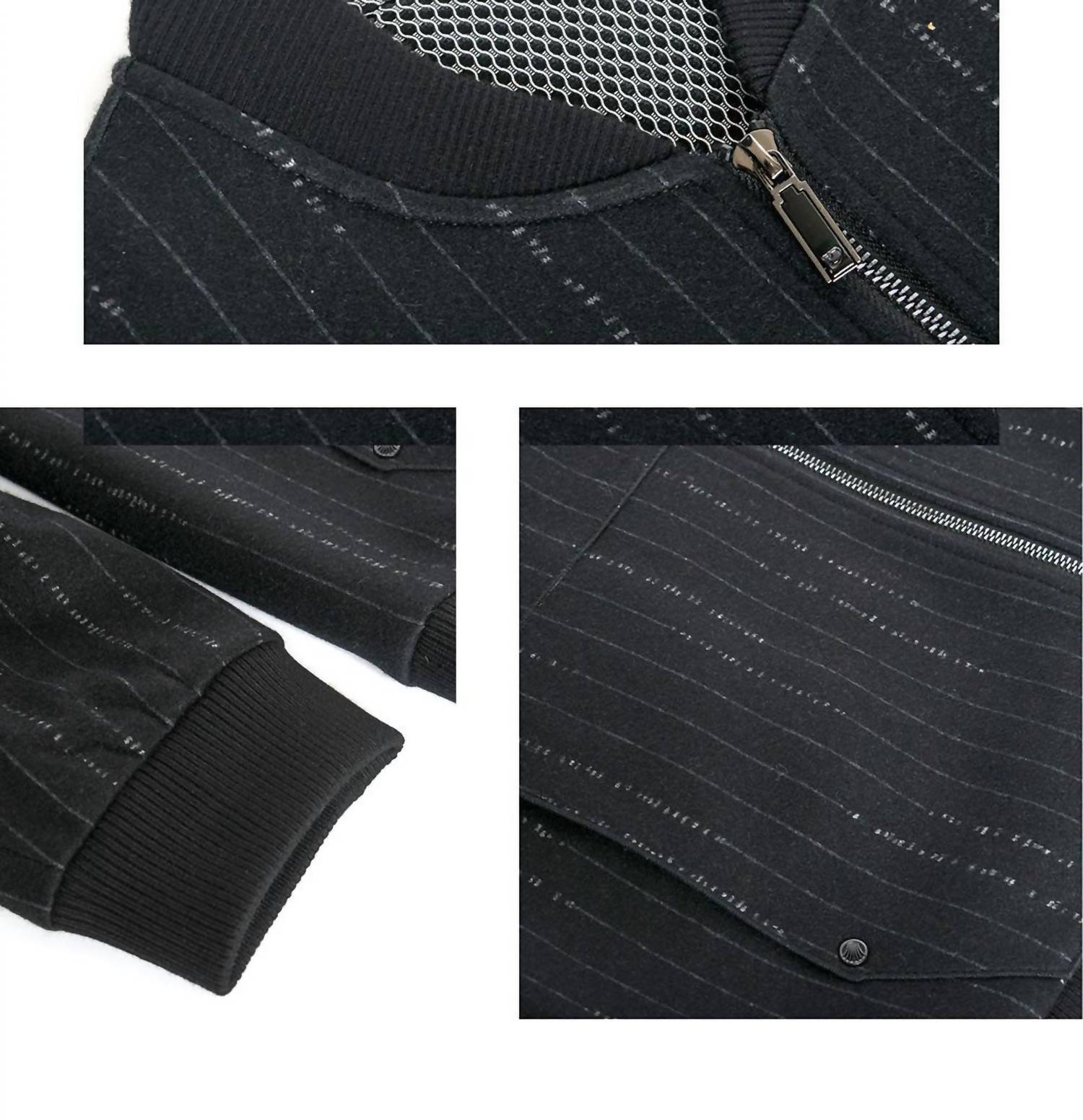 Discover warmth and style with the Mariella Bomber Jacket by BARABAS, a standout piece from their men's collection. Featuring a long-sleeved design and zipper closure, this jacket combines functionality with fashion through its black and semi-shiny striped material and elastic cinch cord at the waist. The shell fabric is composed of 43.5% Polyester Fiber, 36.3% Wool, and 20.2% Cotton, paired with a polyester lining for added comfort. Care for this versatile jacket by dry cleaning and enjoy its practical features, including a stand-up knit collar and two front handwarmer pockets with zipper closure.
