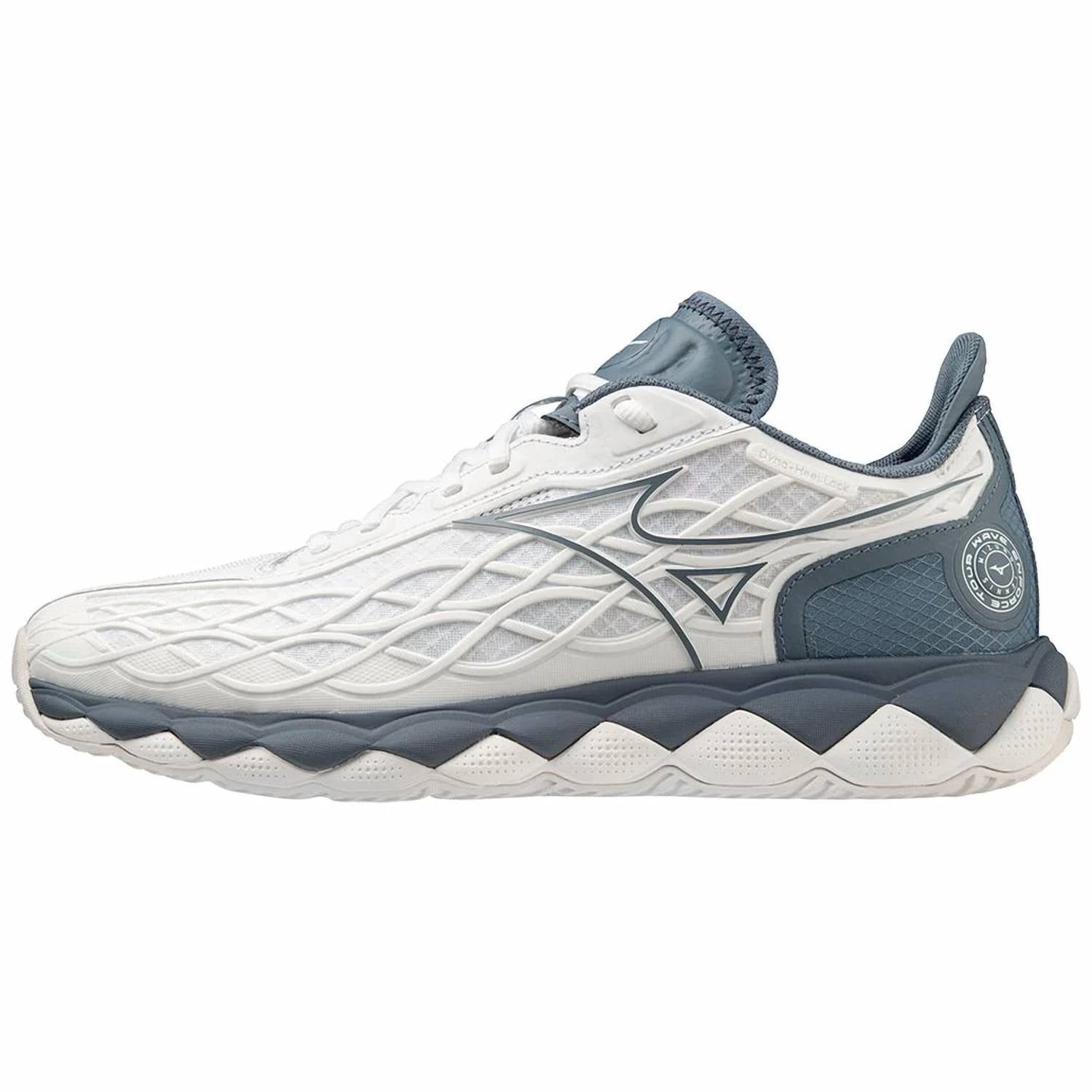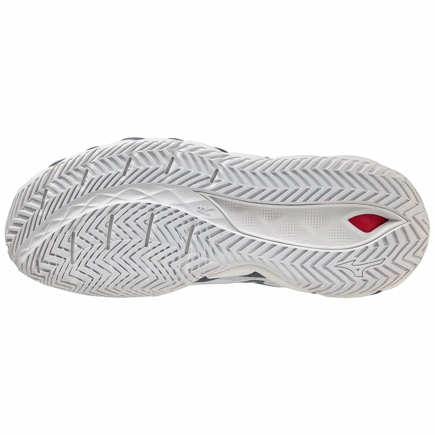 Elevate your game with the Men's Wave Enforce Tour AC Tennis Shoes by MIZUNO, meticulously crafted for powerful performance on the court. These athletic shoes come in a sleek White/Blue design and are equipped with MIZUNO ENERZY CORE technology in the heel and toe for enhanced energy return and cushioning. The flat heel and outrigger widen the sole gauge, providing strong support for rotational movements, while the Dyna-Heel Lock structure ensures a snug fit for ankle and heel stability. Designed with a round toe shape and ideal for game day, these shoes embody the athleisure trend this spring season.
