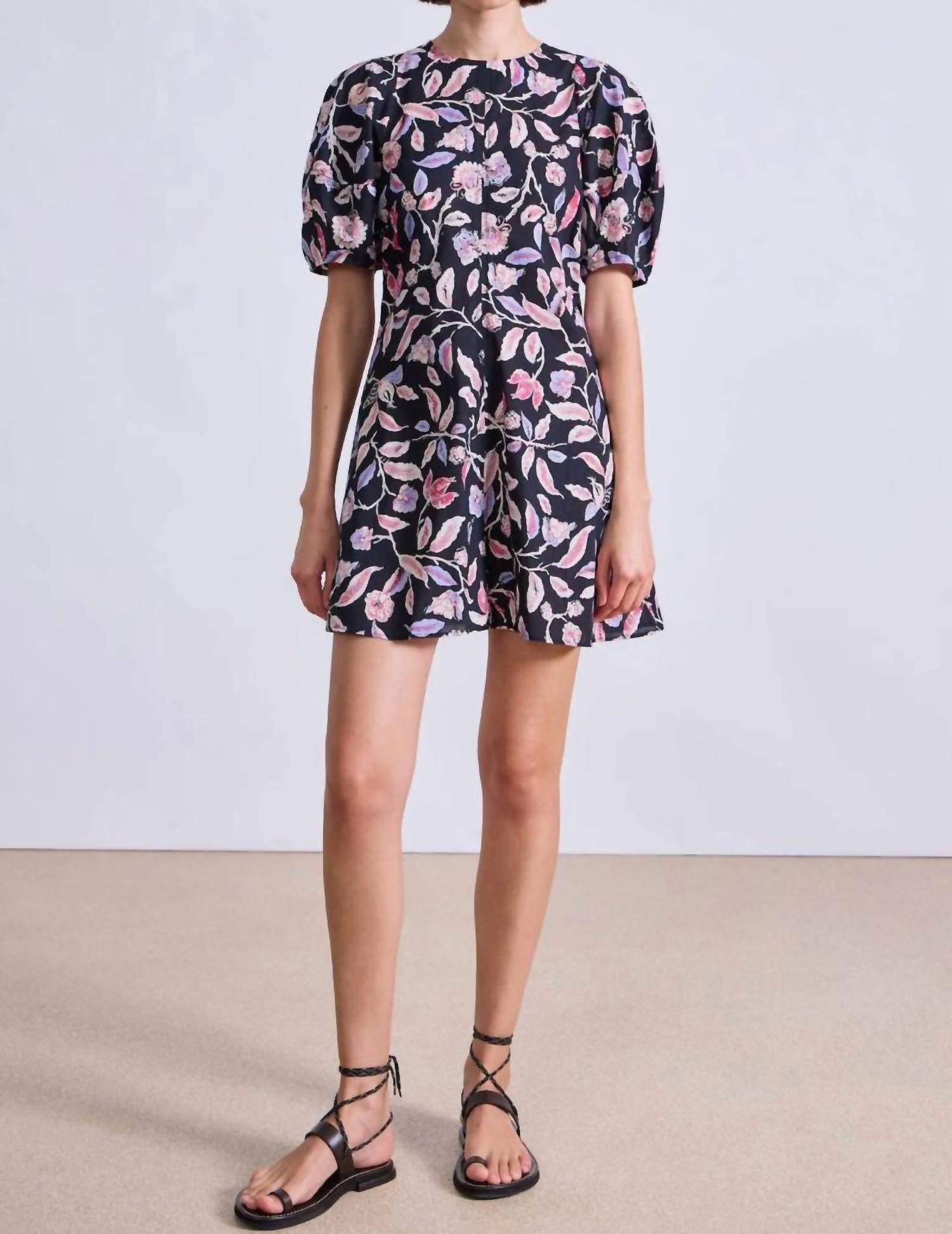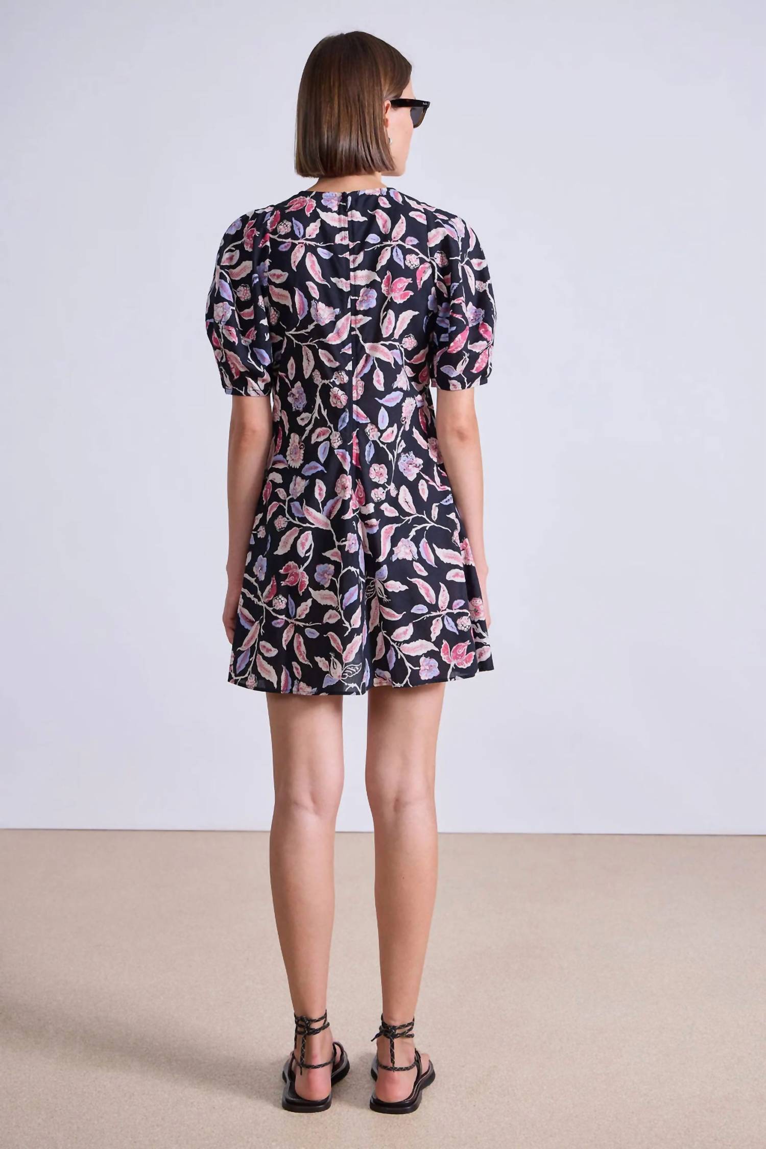 Introducing the Apiece Apart Bettina Mini Dress in Garden Floral, an elegant choice for your vacation with a touch of Boho Chic flair. This mini dress features elbow sleeves and a fashionable A-line silhouette, crafted from 100% regenerative cotton for a sustainable choice. With a chic crewneck design, it is proudly made in India. Care for this patterned beauty by dry cleaning only to ensure its longevity.