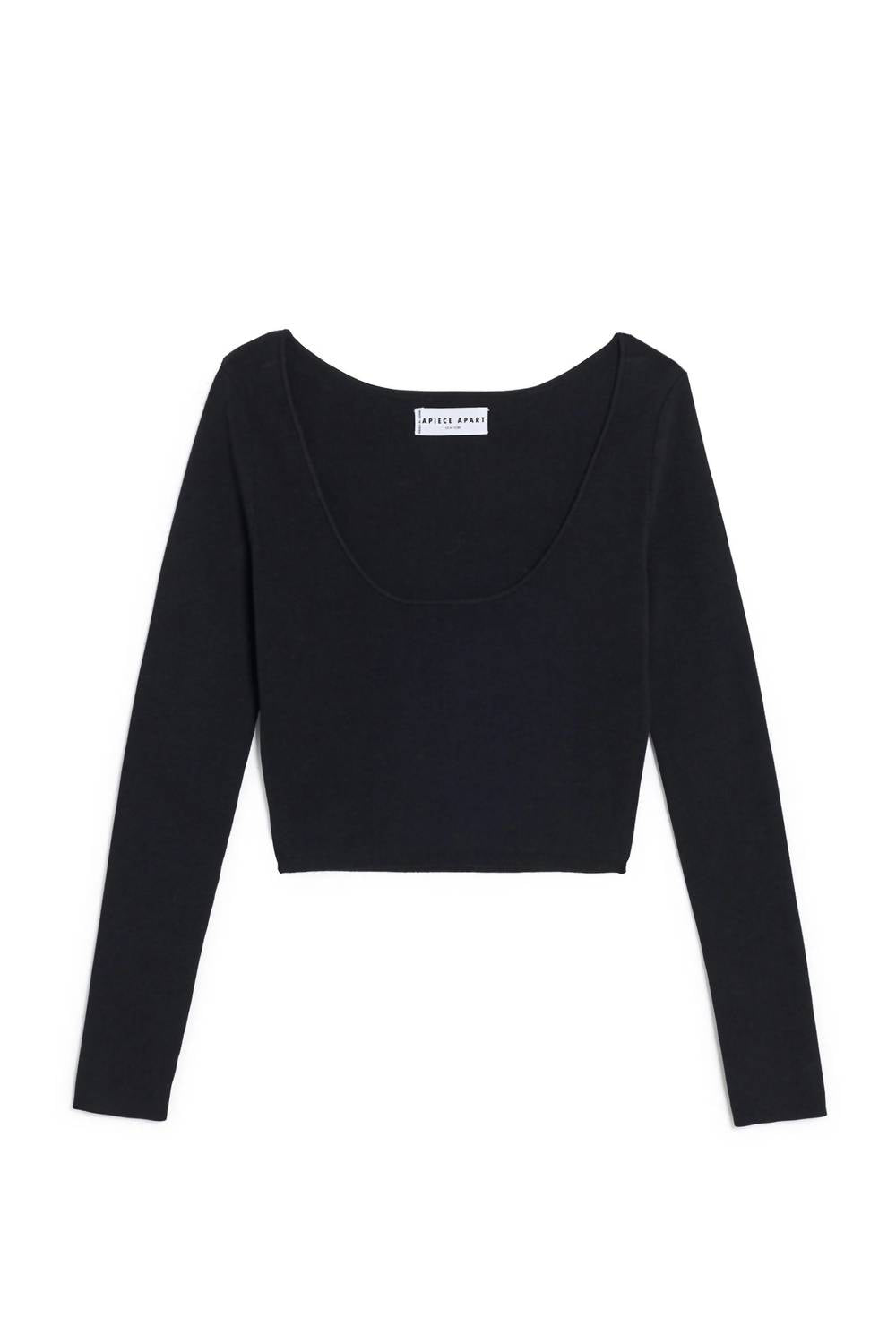 Look no further, you just found your perfect tee! Introducing the Muriel Top by APIECE APART, a minimalist addition to your wardrobe ideal for the festive season. This solid black tee features long sleeves and is crafted from a blend of 75% organic cotton and 25% recycled nylon. Designed with a scoop neck and a pull-on closure, this versatile piece is made in China. To maintain its premium quality, please dry clean only.