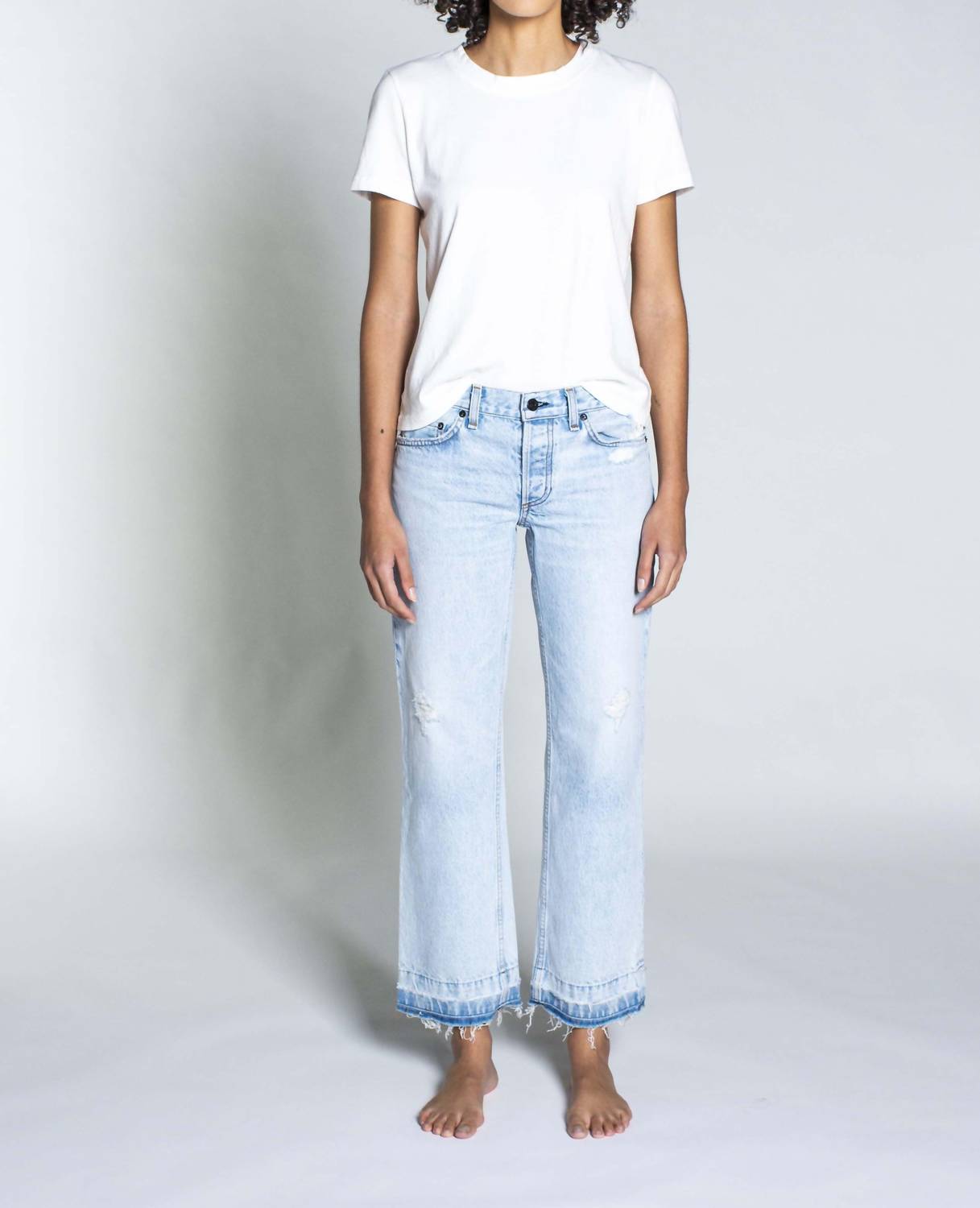 This classic straight leg jean has a perfect fit and goes with just about everything. Introducing the ASKK NY Low Rise Straight Leg Jeans in Bleach Destroy, crafted from premium 10 oz. Japanese cotton denim. These jeans feature a low rise with an 8.5" rise, a 29" inseam, and a 16" leg opening, complete with a stylish frayed hem for an on-trend look. Manufactured in Los Angeles, they offer a regular fit with a button closure, ideal for streetwear and holiday parties alike. Care is simple with machine wash cold and line dry instructions, making them a practical addition to your summer wardrobe.