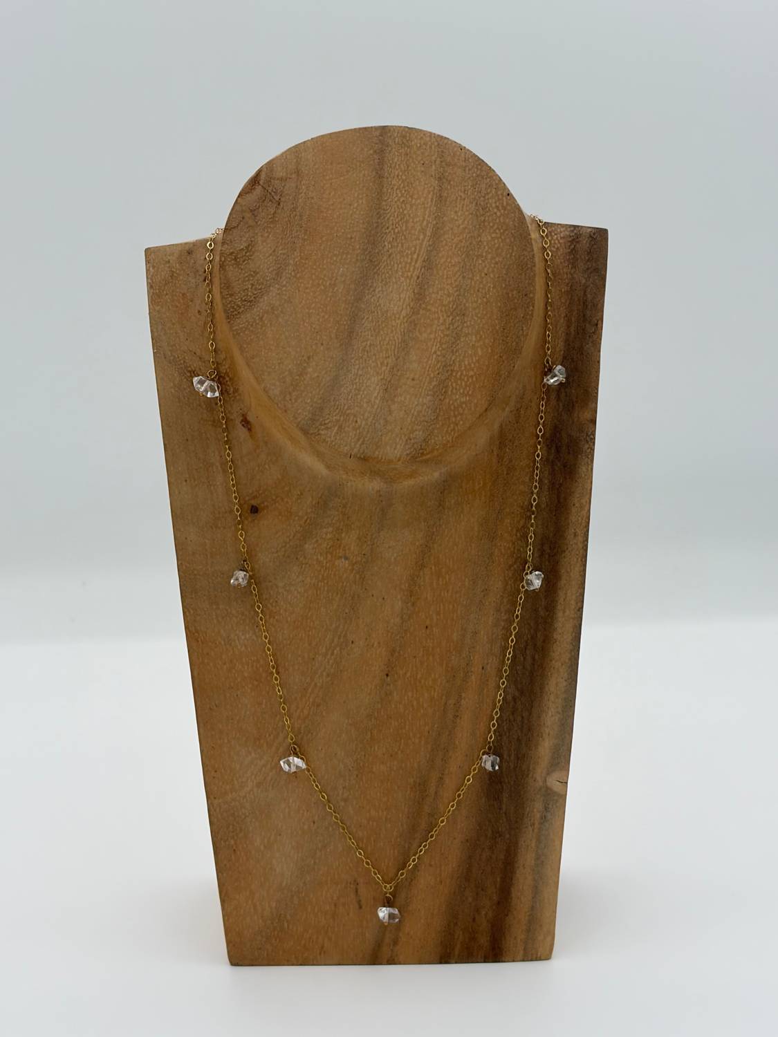 Enhance your elegance with the Women's Herkimer Diamond Quartz Necklace from Blue Copper. This exquisite piece, featuring a gold-filled design, gracefully measures 17 inches in length. The necklace is crafted with goldtone material and showcases a sparkling simulant gem that resembles a diamond, making it a stunning fashion accessory. Perfect for adding a touch of sophistication to any outfit.