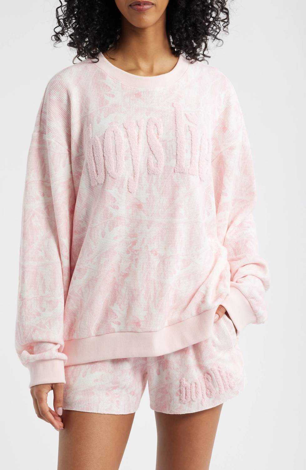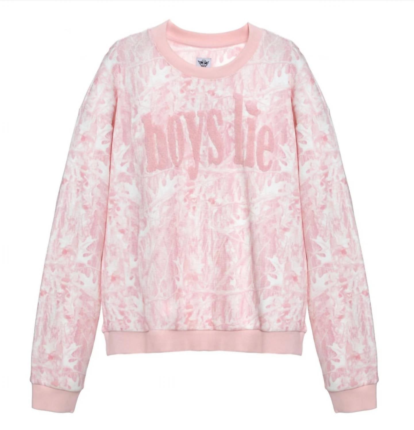 Elevate your fall wardrobe with the Women's Manhunt Kara Crewneck Sweater from Boys Lie, where cozy meets cool. This patterned pink camo sweater features long sleeves and a classic crewneck, with a subtle pale pink "Boys Lie" embroidery for a chic statement. Crafted from 68% Polyester, 29% Rayon, and 3% Spandex in a soft, textured fabric that offers both comfort and style. Closure: Pull-on. Care: Machine wash and tumble dry for easy maintenance.