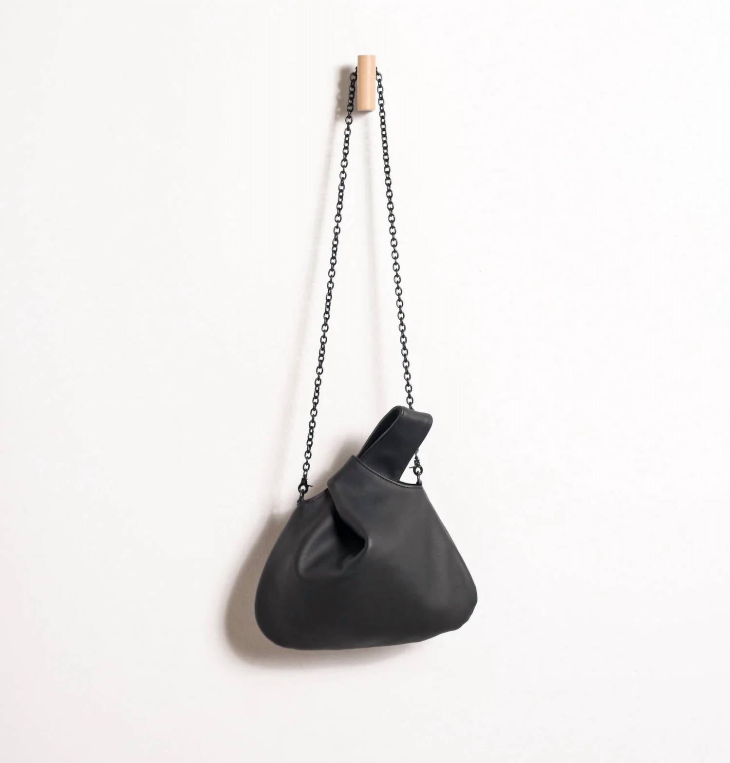 Introducing the Women's Luna Crossbody Bag by Daniella Lehavi, crafted from luxurious 100% Italian leather in sleek black. Its versatile design offers adaptability with options to carry it by hand, shoulder, or as a crossbody, complemented by a convenient chain shoulder strap measuring 101cm (39.7"). The interior features an inner pocket with a zipped closure and small open pockets, all enhanced by a leather strap keychain holder. Dimensions are Height: 17cm (6.6"), Width: 25cm (9.8"), Depth: 3cm (1.1").