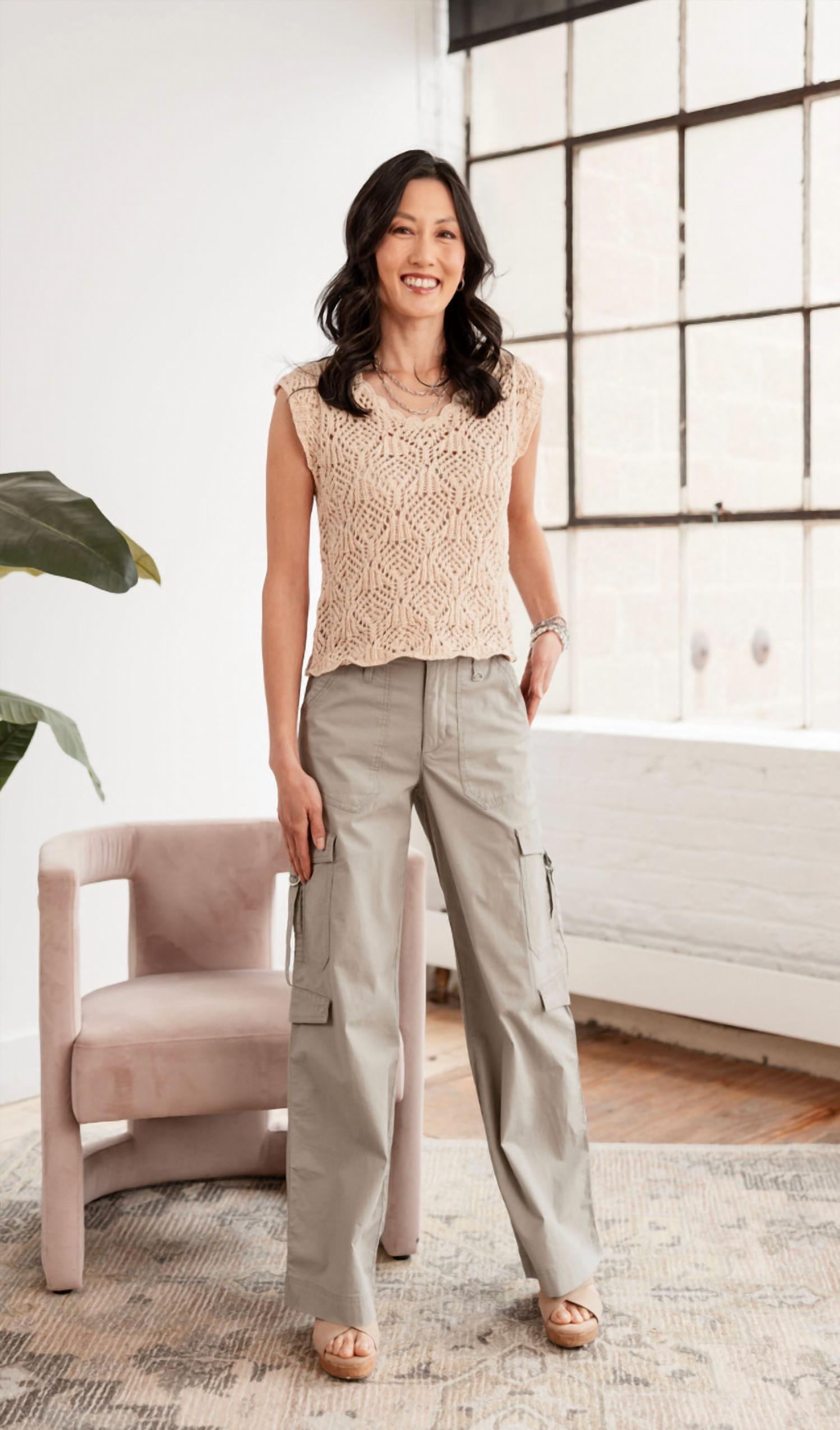 The Elan Cap Sleeve Crochet Sweater in a stylish nude hue is a perfect blend of comfort and fashion for the boho-chic summer season. Featuring cap sleeves and a scoop neckline, this textured top offers a flattering fit and versatility. Closure: Pull-on style. A great choice for vacation or holiday occasions like Thanksgiving, ideal for the fashion-forward woman.