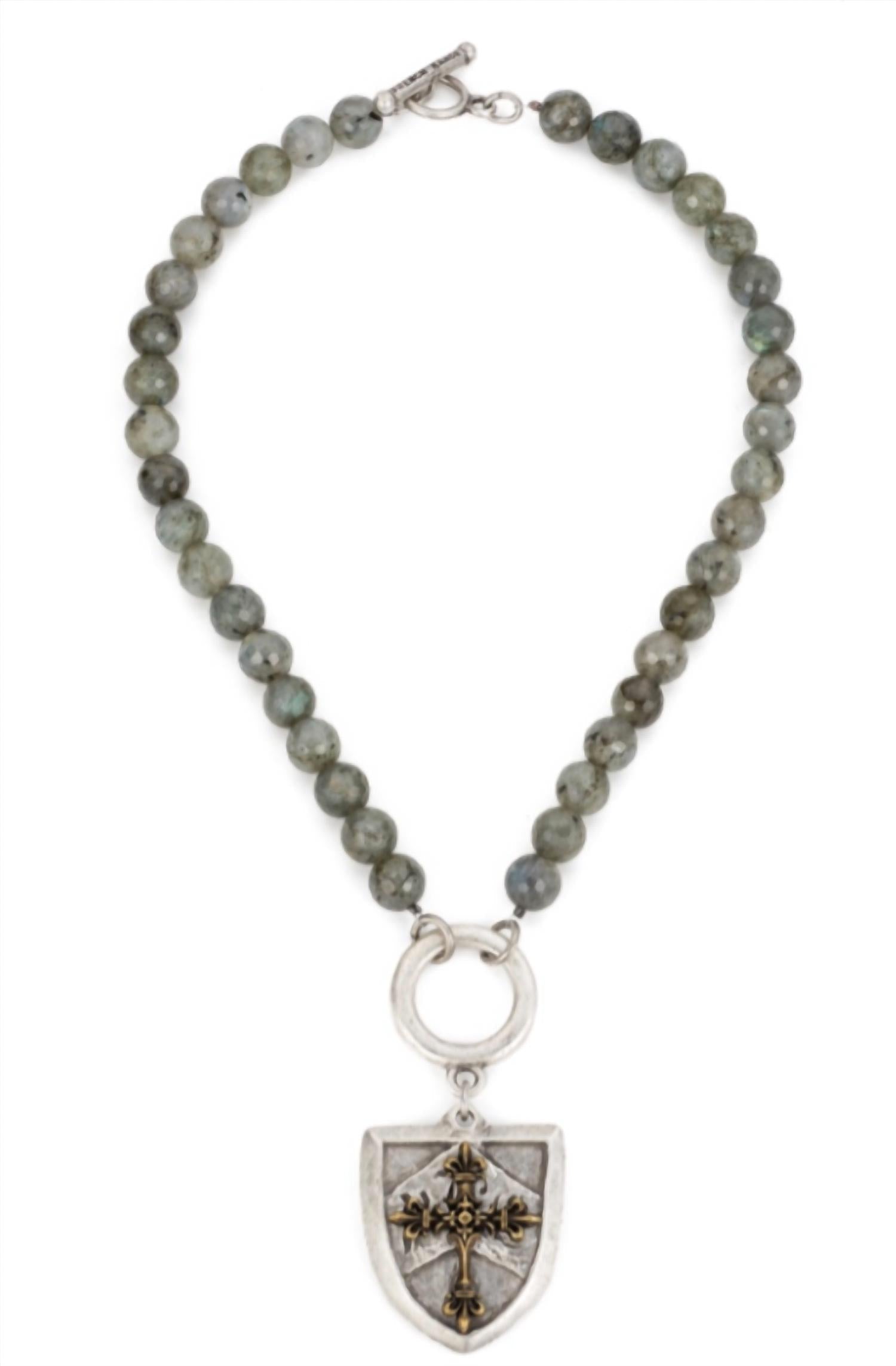 This necklace features 17” of faceted Grey Labradorite with silver toggle and Cheval Cross Stack medallion. Absolutely beautiful all by itself or layered with our other designs.• Strand Length: Short, 17”