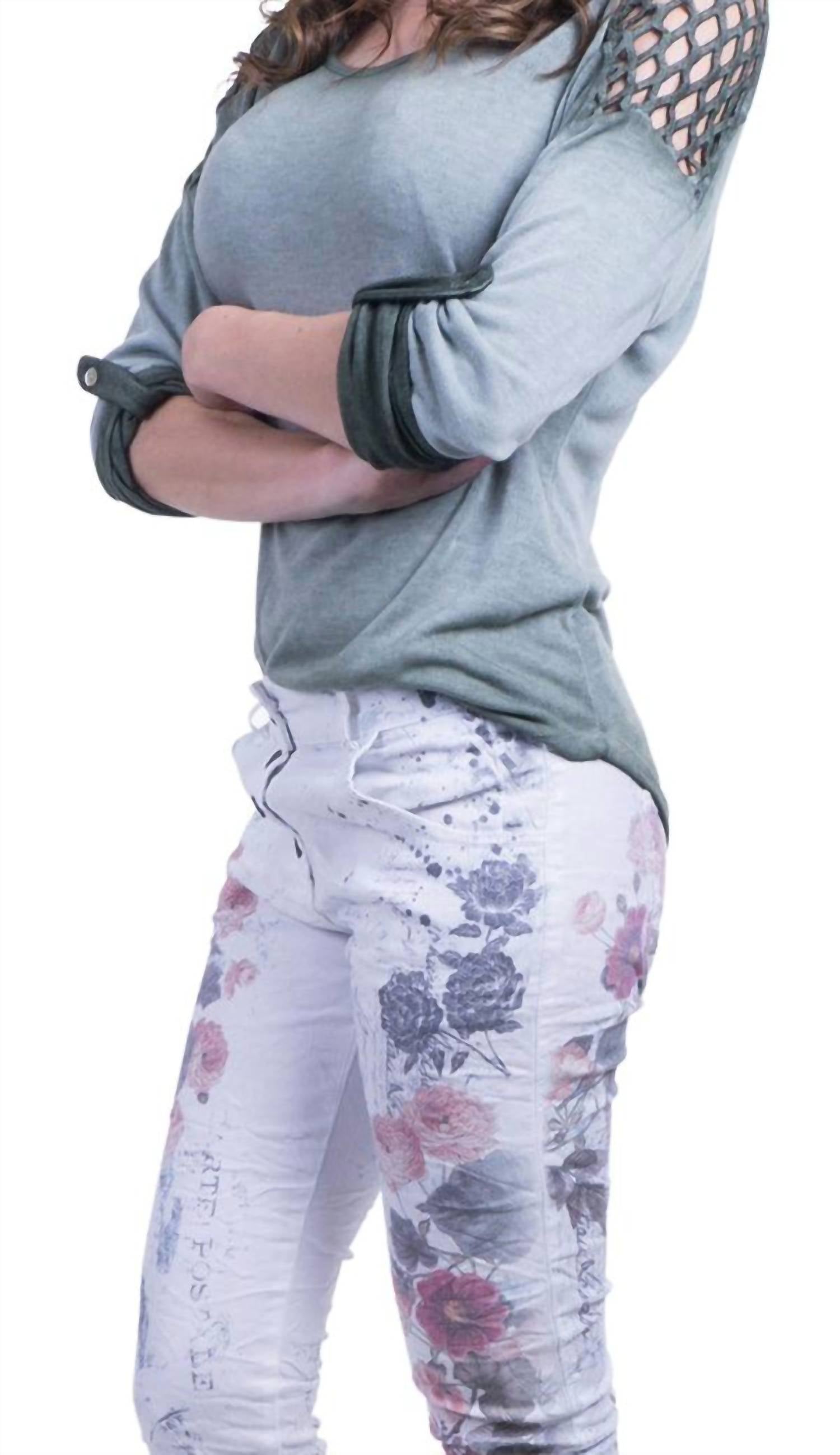 Experience the perfect blend of comfort and style with this trendy crew neck sweater, designed to effortlessly elevate your wardrobe. Pair it with your favorite denim and loafers for the perfect look. Embrace a playful yet chic vibe with the Alice Knit Sweater Top by GIGI MODA, crafted in an olive hue for a preppy summer statement. Designed in Italy, this crew neck top features three-quarter sleeves with functional buttons for a rolled-up option and a unique cage shoulder embroidery. Made from a soft viscose blend, it offers a comfortable fit for small and medium sizes. This pull-on top should be hand washed and laid flat to dry.