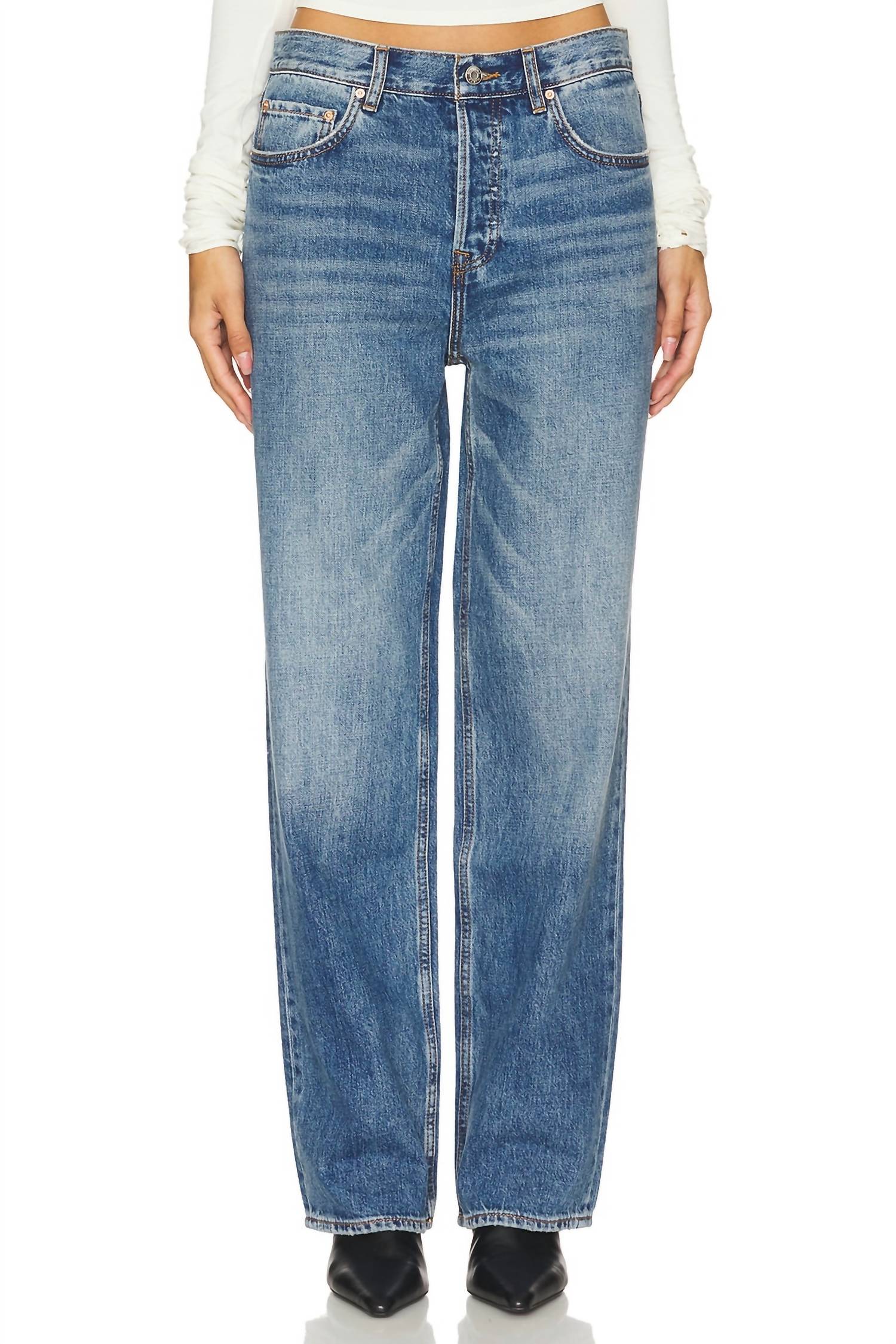 Discover the Bella Low Rise Boyfriend Jean by GRLFRND, a quintessential piece in the Gramercy Park colorway. Crafted from 100% cotton, this denim offers a featherweight feel with light whiskering and faded detail for a vintage aesthetic. Featuring a zip closure and a 5-pocket design, these jeans provide a perfectly dropped crotch, relaxed hips, and a slouchy leg fit. With a rise of 10.75 inches and an inseam of 32 inches, they ensure both comfort and style for any evening event. Care: Machine wash.