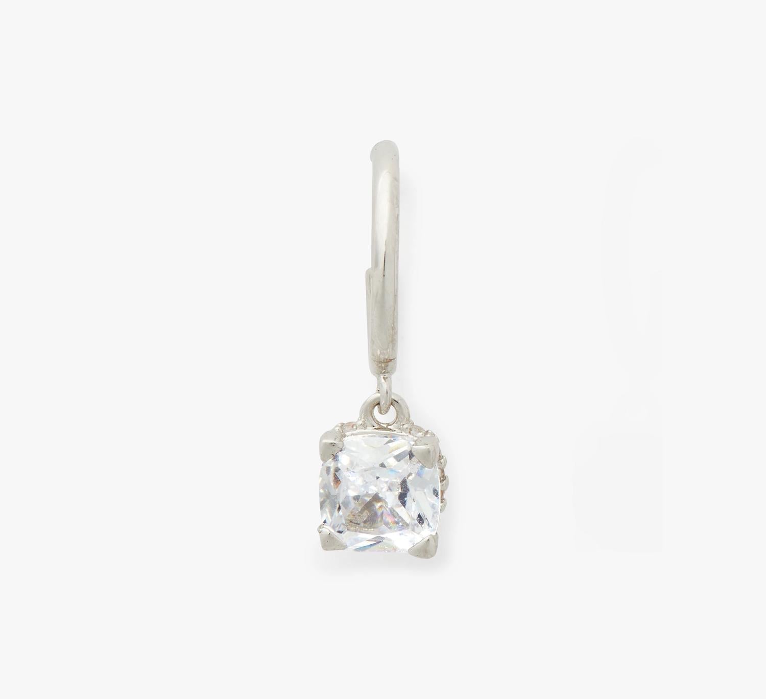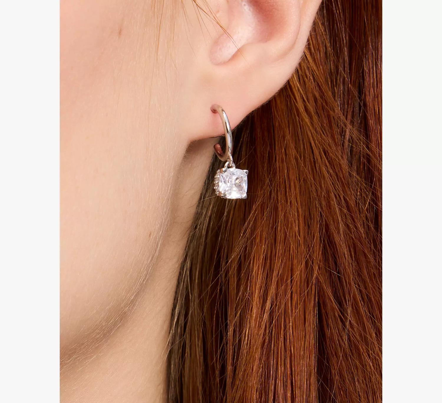 Embrace elegance with the Little Luxuries 6mm Square Huggies by Kate Spade, a stunning addition to your jewelry collection. Crafted from plated metal and adorned with radiant-shaped cubic zirconia, these earrings gleam in a sophisticated silver finish. Measuring at 0.8" in length and 0.25" in width, they feature signature spade ear clutch backs for secure wear. These fashion earrings seamlessly blend luxury and style for any occasion.