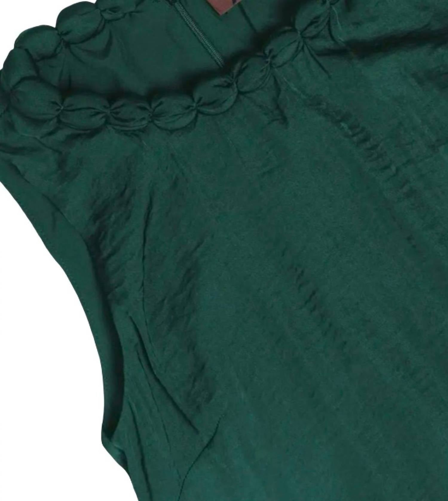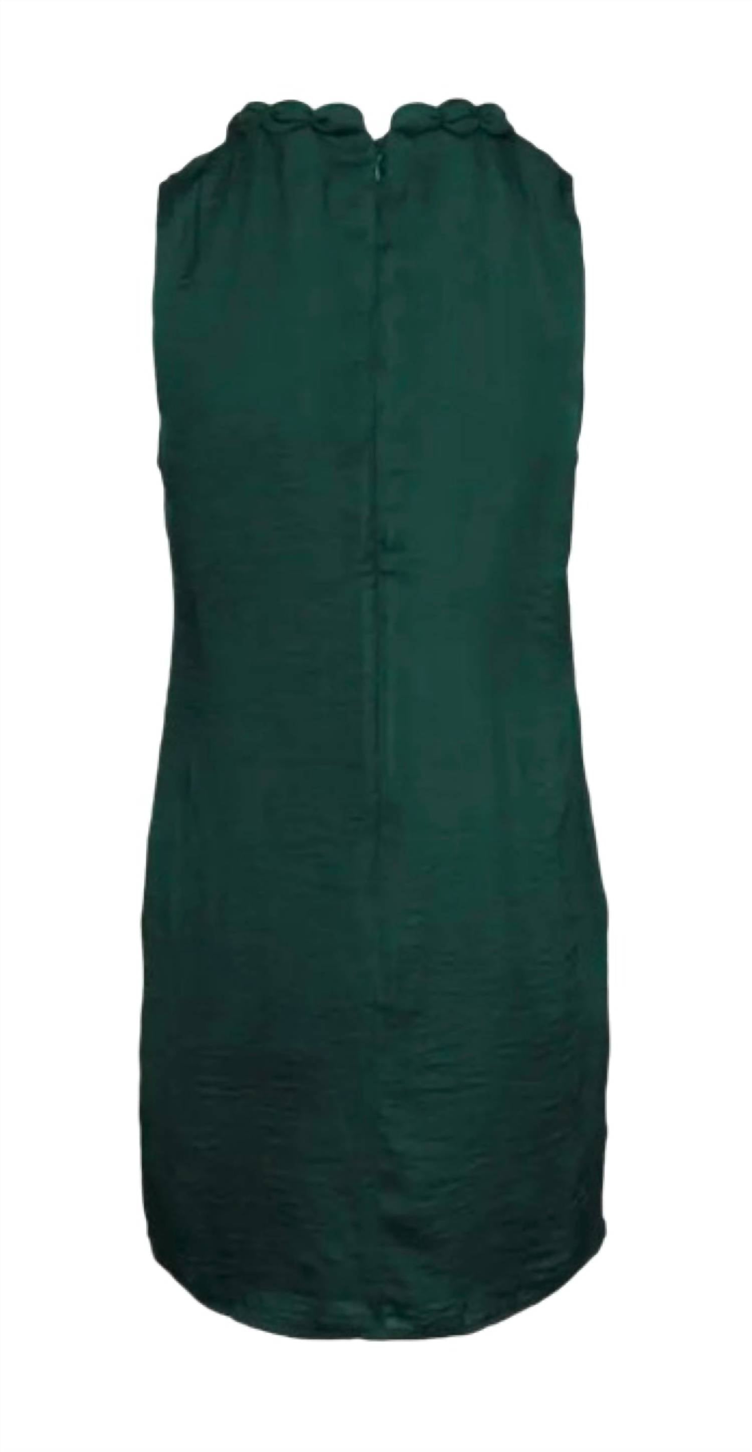 Chic piece in a striking forest green. Made from 100% silky woven polyester. Offers a lightweight yet fully lined fit for comfort and elegance. Featuring a stylish ball detail along the crewneck, includes a back zip closure for easy wearing. Ideal for a polished evening look. Hand washed for effortless maintenance.