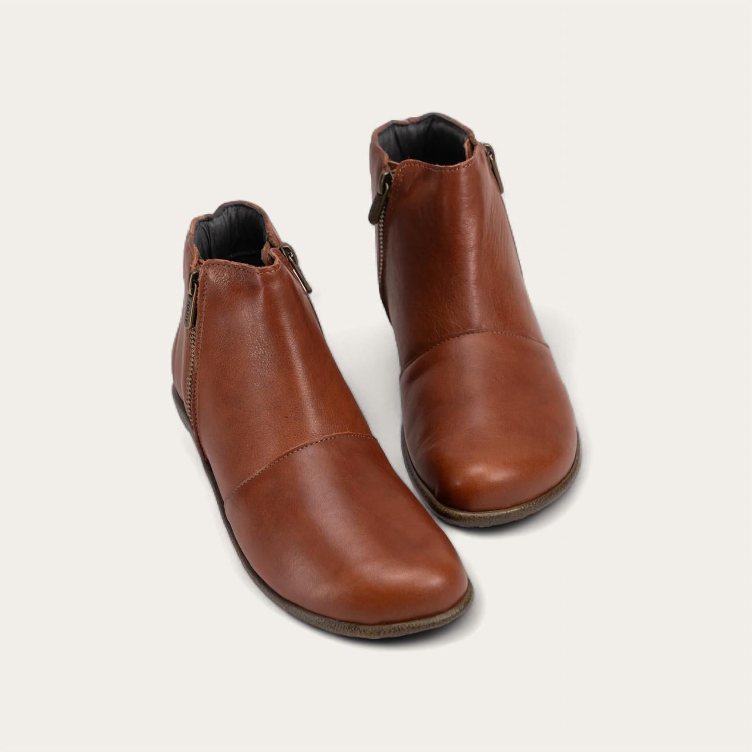 Your effortlessly stylish bootie that combines comfort, versatility, and modern design. Dual zippers make slipping in and out a breeze, while the removable cork and latex footbed contours to your feet for customized support. A lightweight 1" polyurethane sole offers durable, slip-resistant stability, and the hand-sewn Strobel construction ensures lasting flexibility and strength with every step.