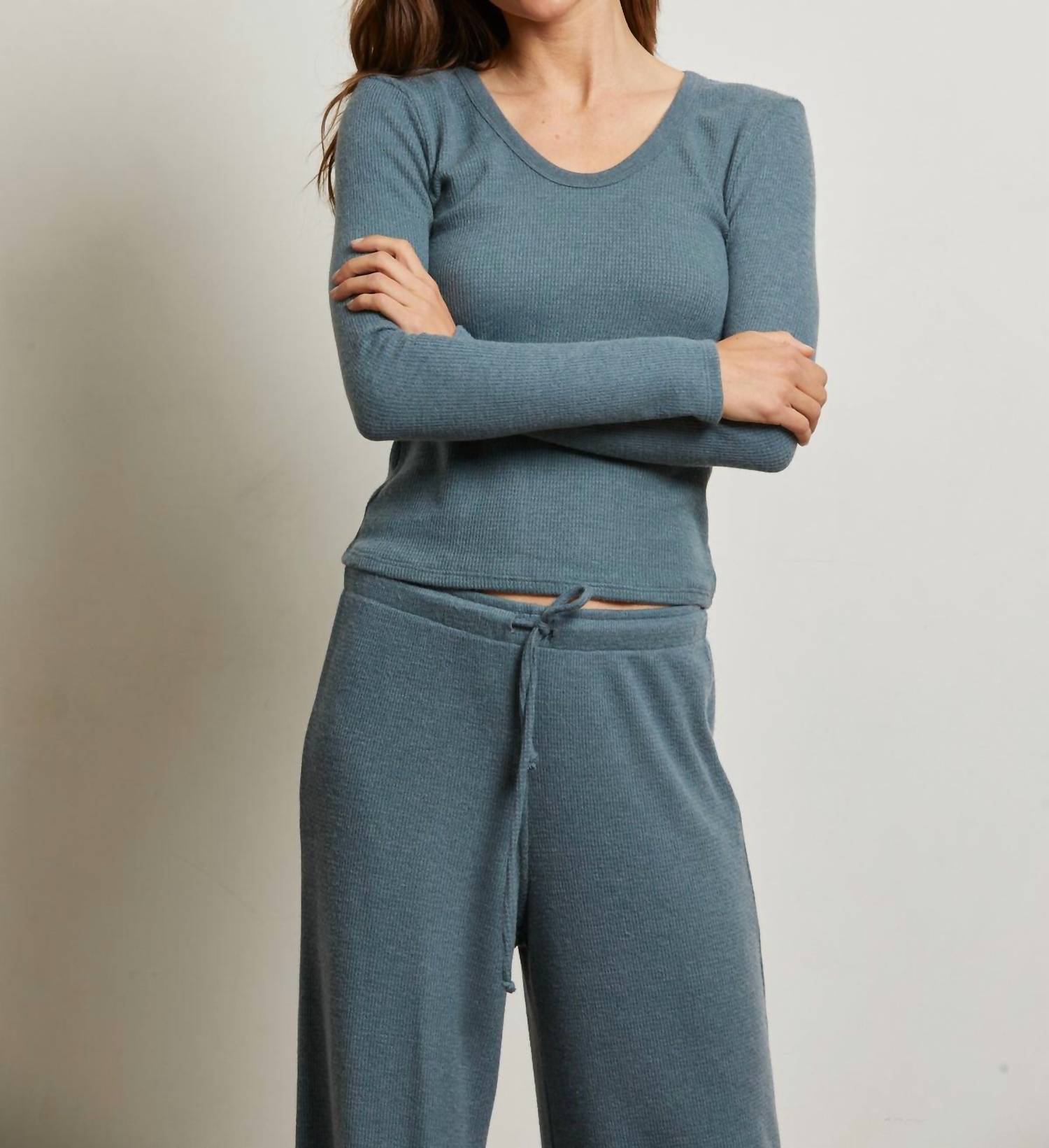 part of our brushed waffle collection, the esme top is the definition of versatile. with a full-length fit and ultra-flattering u-shaped neckline, she pairs just as easily with the maddie bottom as she does with your favorite denim. simple, clean, and ready for whatever the day brings.