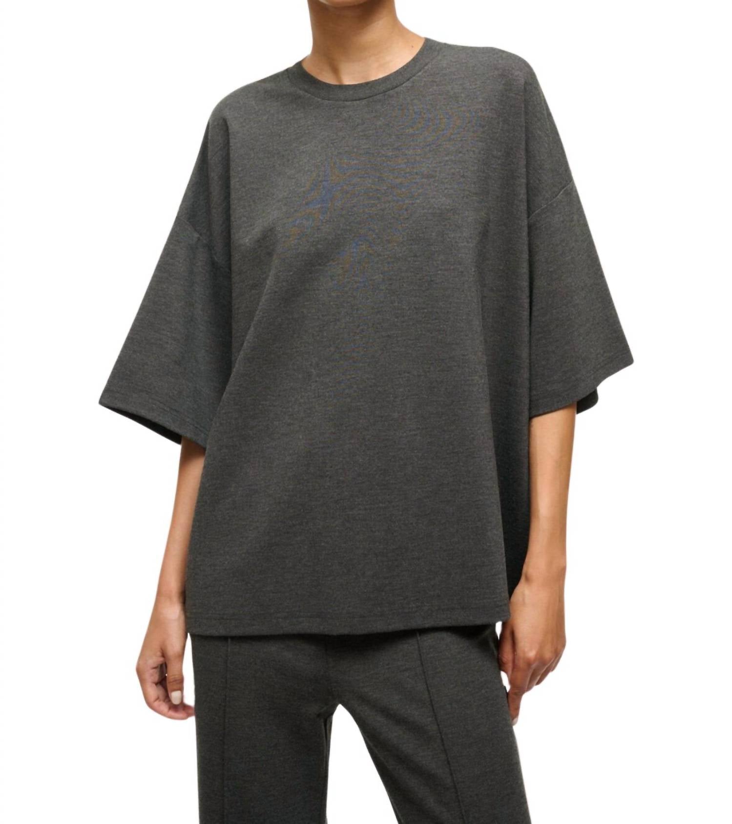 Discover the STAUD Capsule Top in Heather Grey, a minimalist, oversized tee perfect for summer travel. With elbow-length sleeves and a comfortable nylon blend, this women's top features a crewneck and solid pattern for effortless style. Made from a composition of 70% nylon, 25% nylon, and 5% spandex, it offers the perfect combination of stretch and comfort. Closure: Pull-on style. Care: Dry clean only.