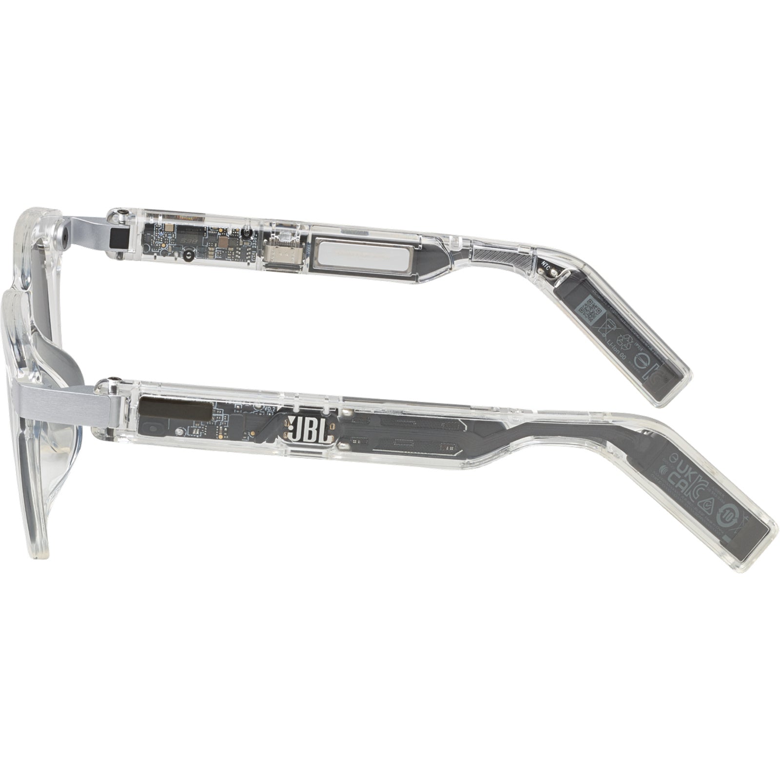 As armações JBL Soundgear são a fusão perfeita de som e moda. Feitas com os materiais termoplásticos mais modernos, as armações finas, flexíveis e leves são confortáveis ​​o suficiente para usar o dia todo e estão disponíveis em três cores translúcidas exclusivas e dois designs elegantes. (E sim, você pode instalar lentes de grau nelas com seu oftalmologista.) Abra as hastes para ligar os alto-falantes e feche-as para desligá-los. Quando estiver usando, basta tocar no logotipo da JBL em qualquer uma das hastes para ajustar o volume, atender uma chamada ou pular uma música. Os alto-falantes ultrafinos de alta amplitude de 25 mm x 9 mm exclusivos da JBL, equipados com a tecnologia JBL OpenSound, são montados dentro das hastes finas para aprimorar a estética e o conforto. Eles proporcionam uma experiência de áudio imersiva e envolvente, enquanto ainda permitem que você ouça os sons ao seu redor. Conecte as armações Soundgear ao aplicativo JBL Headphones e personalize o som de acordo com suas preferências ou escolha entre 6 curvas de equalização predefinidas. As armações JBL Soundgear são onde o estilo encontra o som.