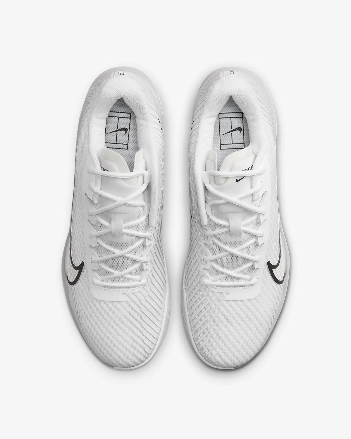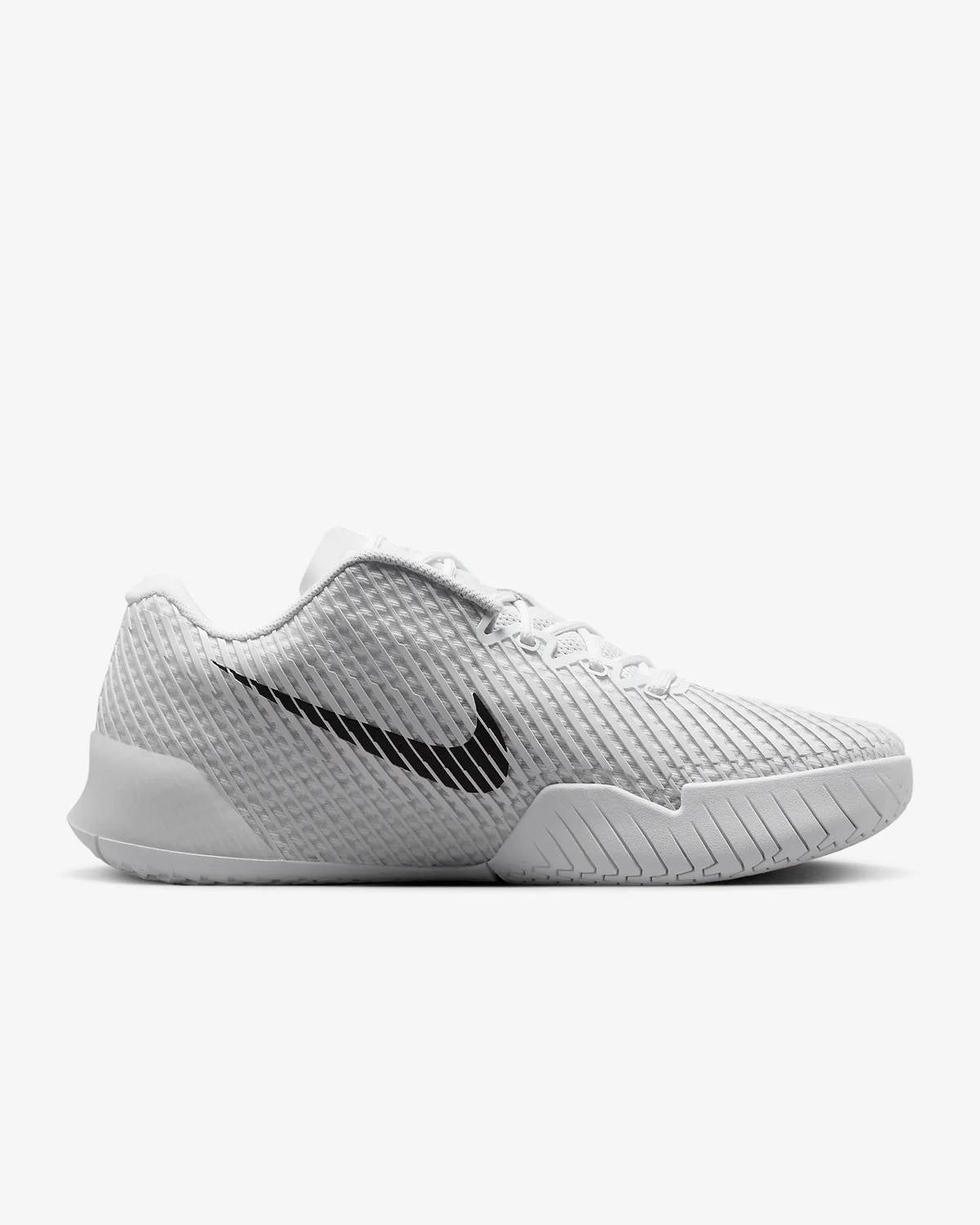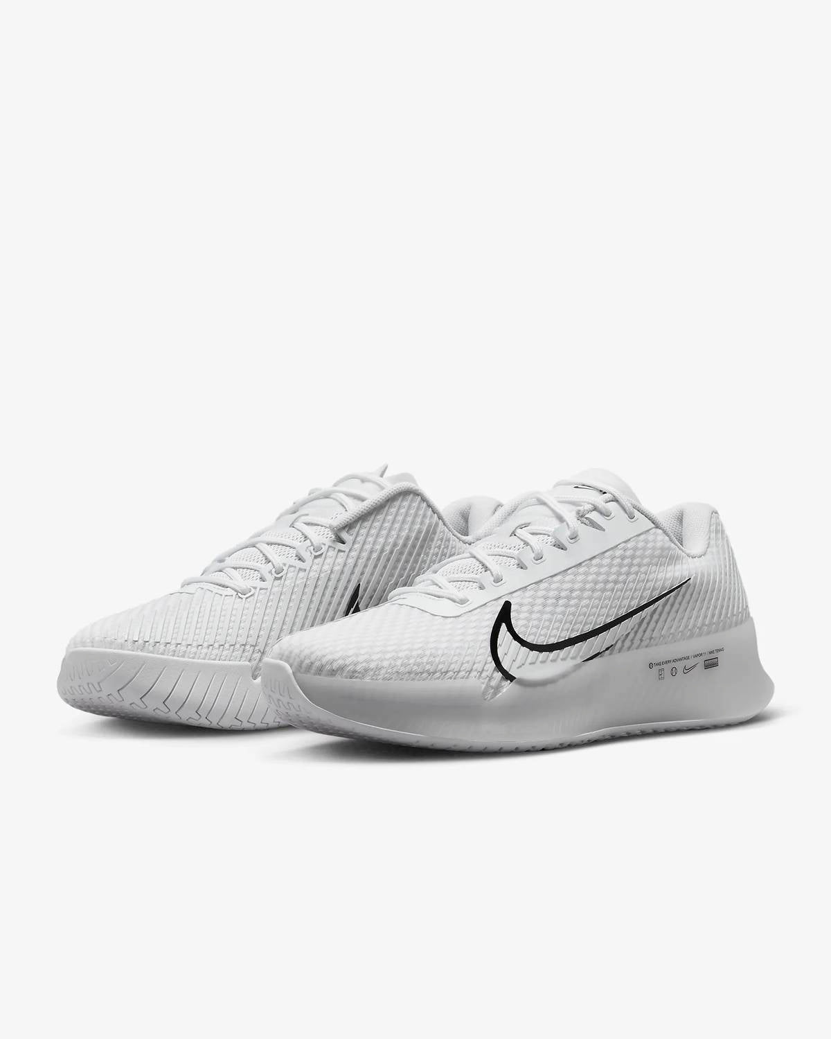 Apresentamos o Tênis Masculino Court Air Zoom Vapor 11, seu companheiro ideal para jogos de alta velocidade. Projetado com um perfil de cano baixo e bico arredondado para agilidade, este tênis combina malha reforçada respirável para um cabedal durável e uma unidade Zoom Air no antepé para primeiros passos explosivos. O solado espinha de peixe, desenvolvido com um design baseado em dados, garante ótima aderência em superfícies de quadra dura, enquanto a estrutura do pé em todo o comprimento oferece estabilização durante cortes rápidos. Deslize para o conforto com um sistema de fácil entrada e desfrute de uma sensação leve e minimalista com borracha reduzida em áreas de baixo desgaste. Cor: Preto/Antracite/Branco. Modelo: DR6966-002.