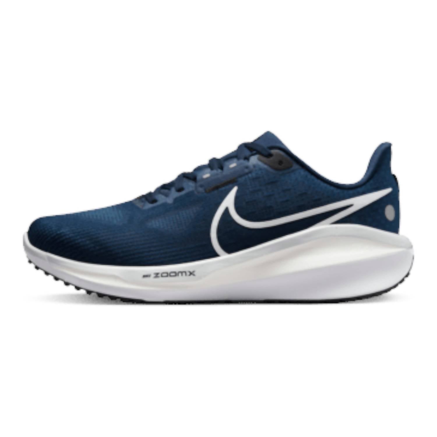 Apresentamos o Tênis Masculino Vomero 17 da NIKE, uma escolha estilosa para qualquer atividade esportiva. Este tênis possui uma composição de borracha durável que garante longevidade e desempenho. Com um design elegante de bico redondo e largura média, ele atende às necessidades de homens adultos que buscam conforto e suporte. Disponível em uma paleta de cores chamativa: Azul-marinho meia-noite/Preto/Azul Racer/Pure Platinum, este tênis combina estilo e funcionalidade com facilidade.