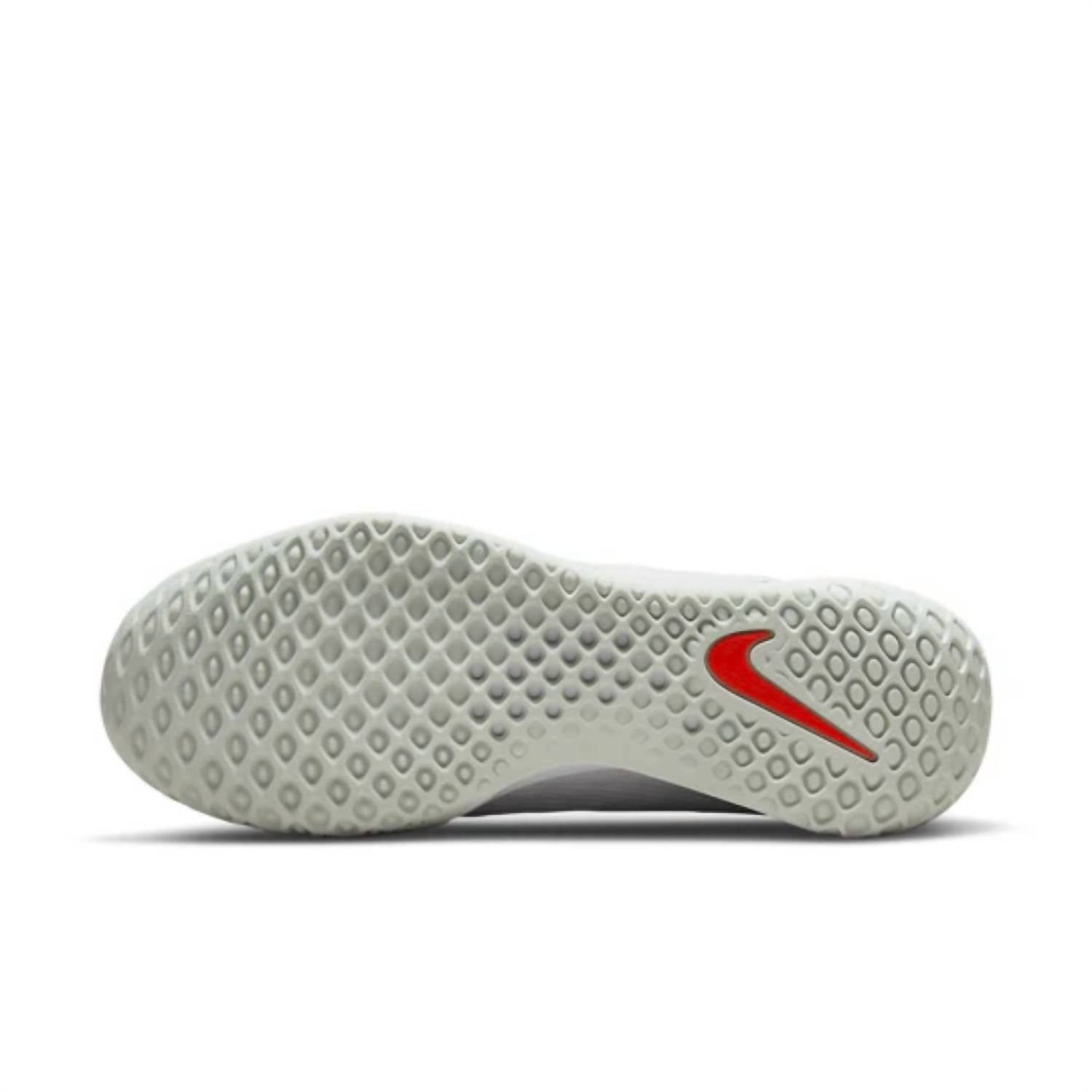 Step up your game with the Men's Zoom Court Nxt Hard Court Tennis Shoes by Nike, crafted for modern athletes. The main white tone is accentuated with Habanero red and washed teal details, offering a dynamic and eye-catching design. Made from mesh fabric and synthetic materials, these shoes ensure enhanced durability and breathability to keep your feet dry and comfortable. The sole features Zoom Air technology and a rubber outsole for superior shock absorption and excellent grip, perfect for quick and powerful movements on the court.