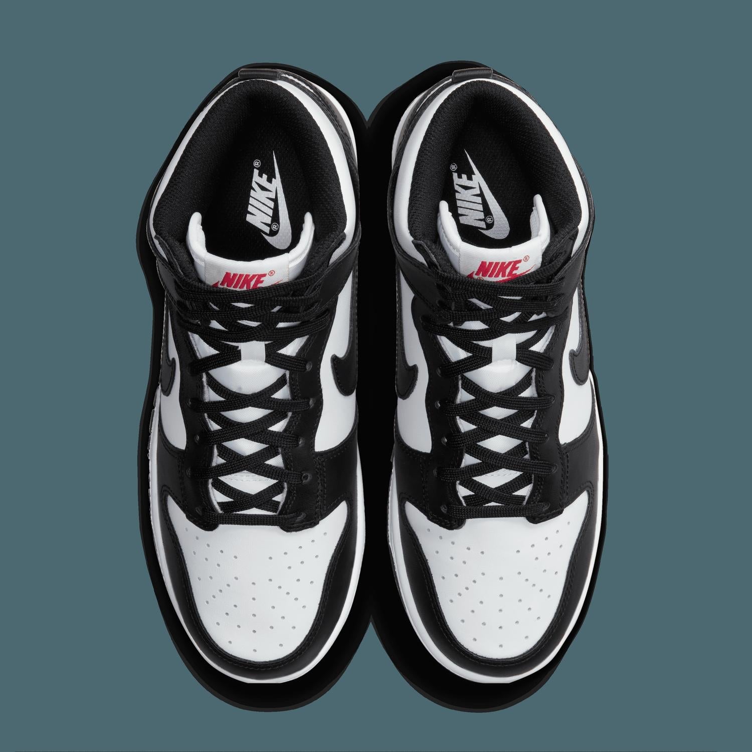 Step into retro style with the NIKE Women's Dunk High Panda Shoe, a nostalgic nod to '80s basketball fashion. Crafted from crisp leather, these sneakers exhibit durable overlays and a padded high-top collar for both an old-school aesthetic and comfort. The foam midsole provides lightweight, responsive cushioning, while the rubber outsole enhances durability and traction with its classic hoops pivot circle. Enjoy the bold color-blocking in Black/White-University Red, perfect for making a statement at any spring holiday party.