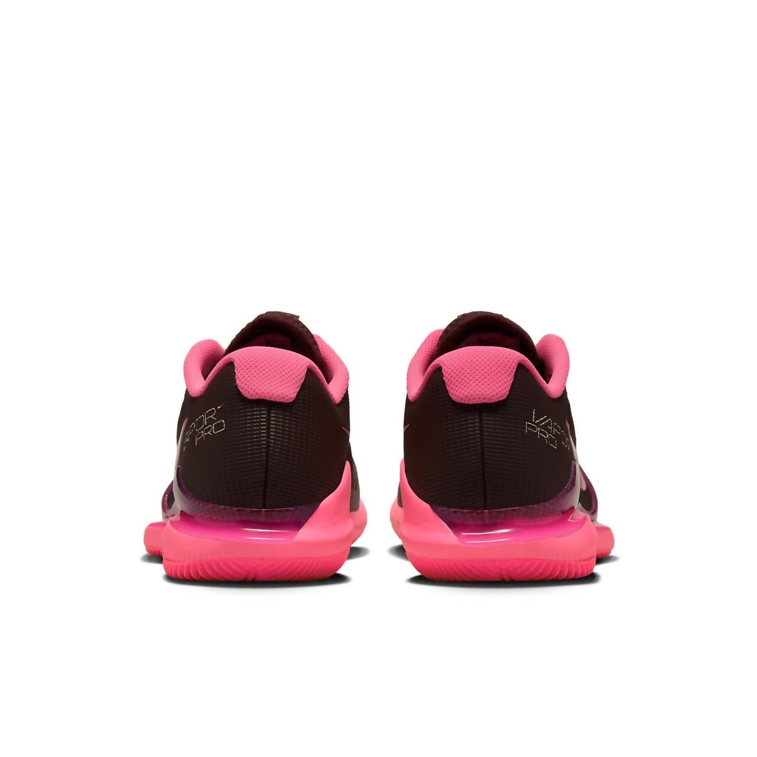 Elevate your game with the Women's Zoom Vapor Pro Hard Court Tennis Shoes by NIKE, designed to balance style and professional performance. These shoes feature a unique colorway of luxurious Burgundy Crush and Bright Pinkcicle, perfect for expressing personality on the court. The breathable mesh upper with synthetic overlays ensures durability and support, while the offset tongue design provides stability for quick directional changes. Crafted for women who love athleisure fashion, these shoes are ideal for the spring game day season thanks to their round toe and platform heel design.