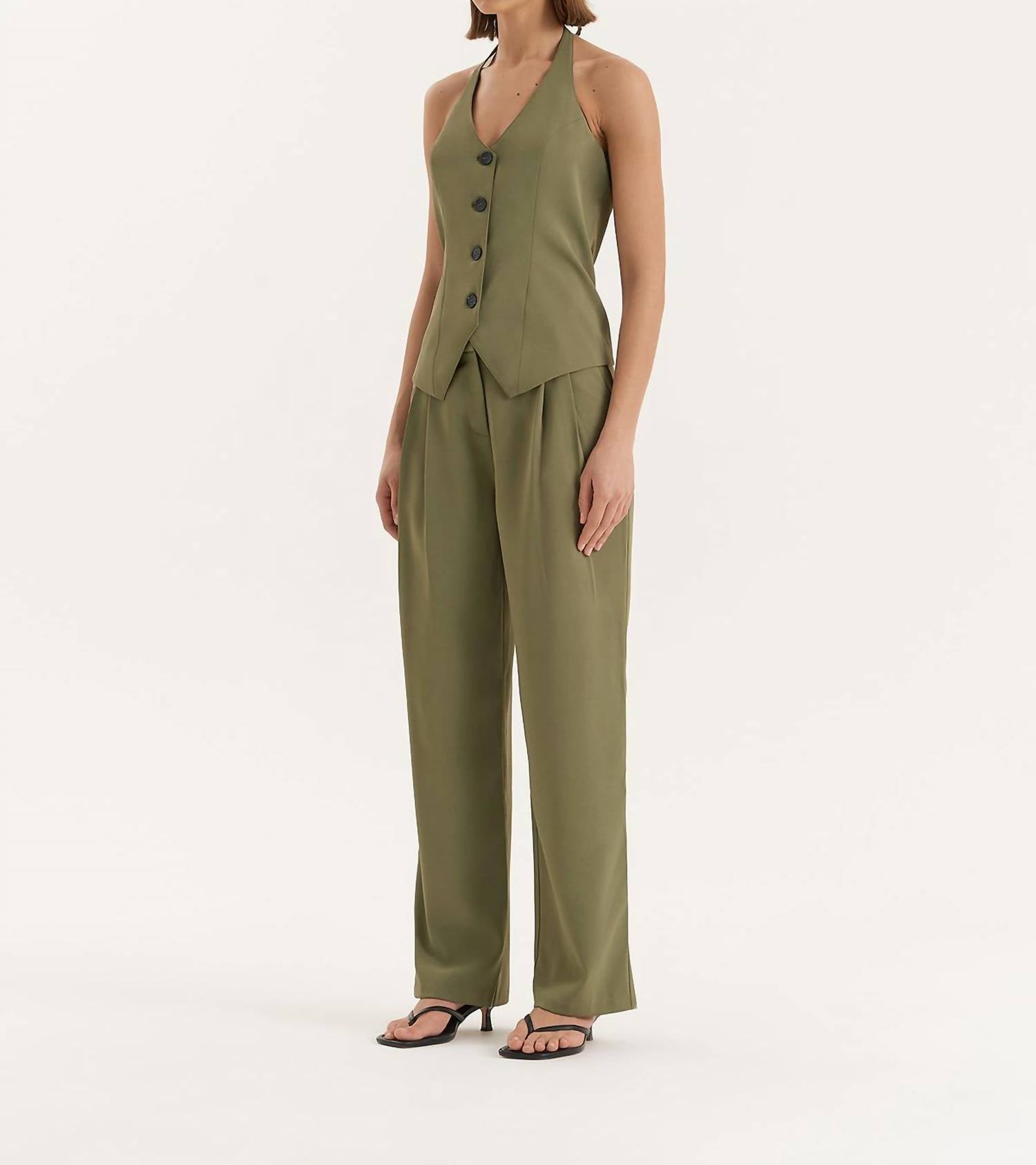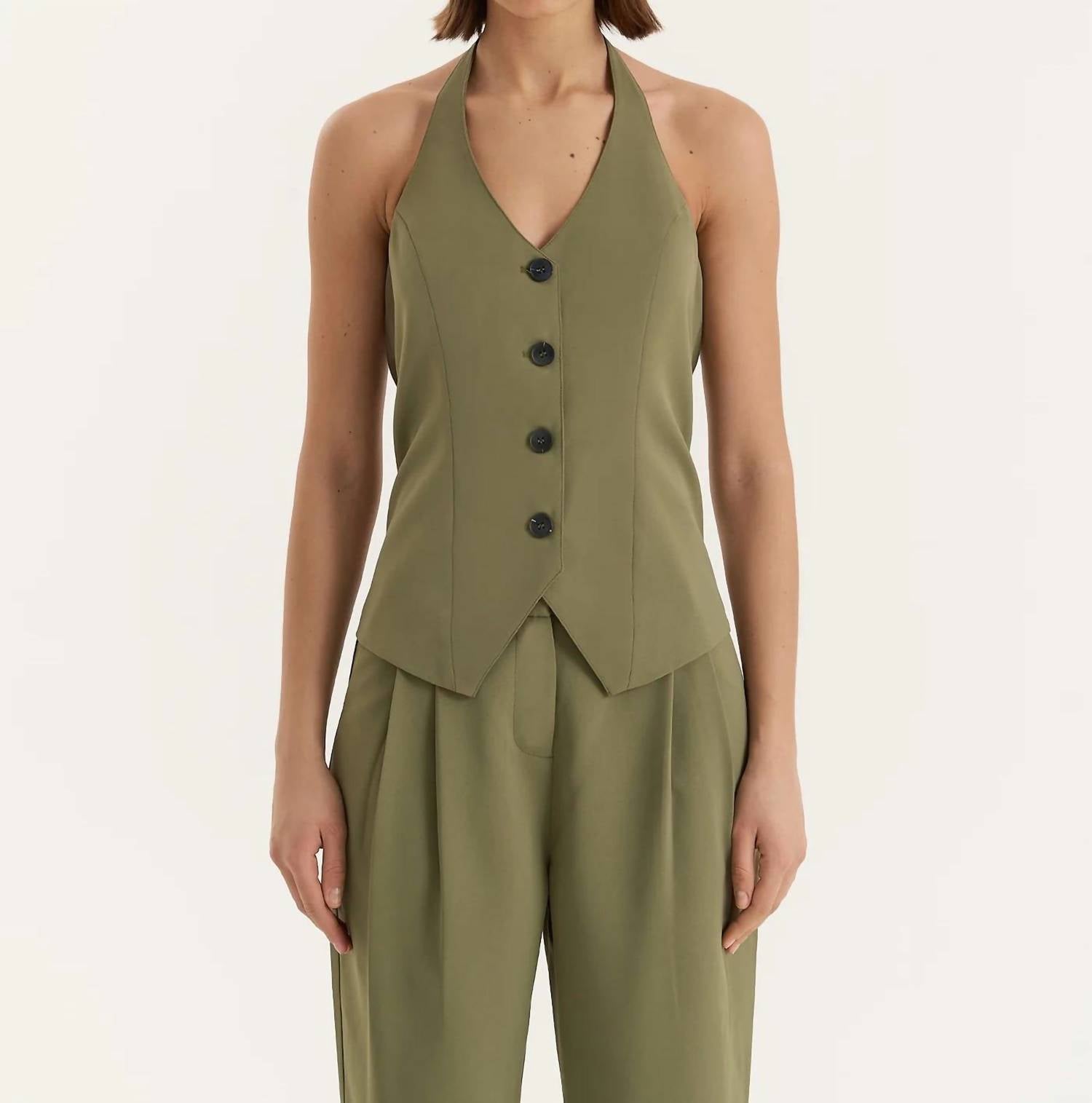 Use este colete sobre uma roupa toda preta para um visual perfeitamente elegante. Apresentamos o Colete Sabrina da 4th & Reckless, uma adição marcante a qualquer guarda-roupa em um tom vibrante de floresta, perfeito para o verão. Este colete sem mangas apresenta um elegante decote halter e um fecho de amarração que realça seu caimento sob medida. Confeccionado em 85% viscose e 15% poliéster, ele confere um toque sofisticado a qualquer conjunto. Combine-o com as calças combinando para um look completo e marcante.