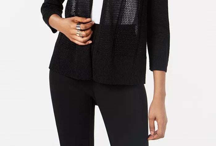 Cardigan Alfani Feminino com Ponto Misto e Frente Aberta, Preto, Tamanho Pequeno
