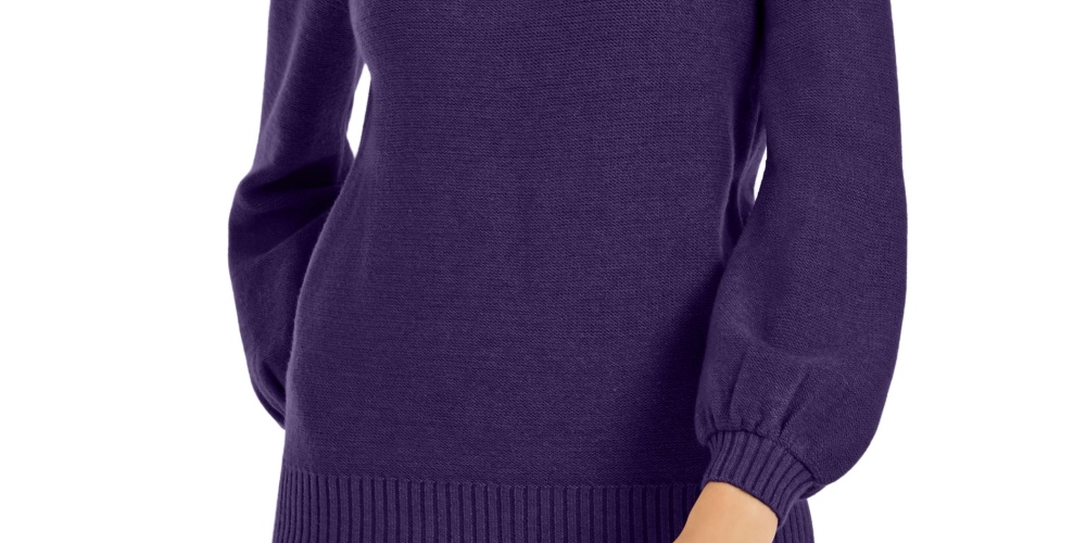 Alfani Suéter Feminino Petite Gola Mock Embelezado Roxo Tamanho PL
