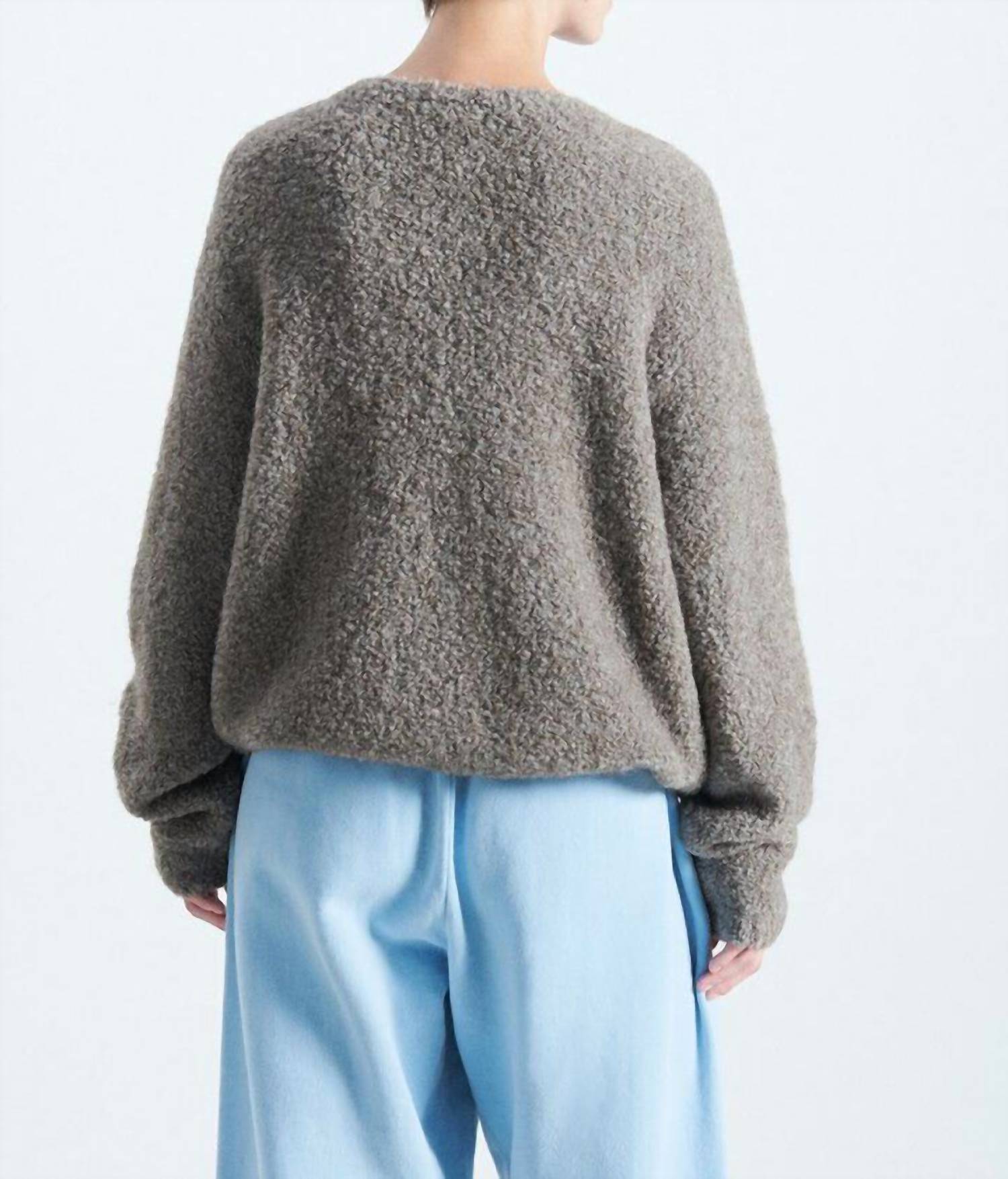 Meet the Zolly Cardigan by American Vintage, a cozy addition to your winter wardrobe in the chic Mole Melange color. This short, long-sleeved cardigan is crafted from a luxurious blend of 36% wool, 35% polyacrylic fibre, 15% alpaca, 13% polyamid, and 1% elastane, ensuring warmth and comfort with a textured finish. It features a button closure and a classic crewneck design, perfect for holiday parties. To keep it in pristine condition, hand wash and lay flat to dry.