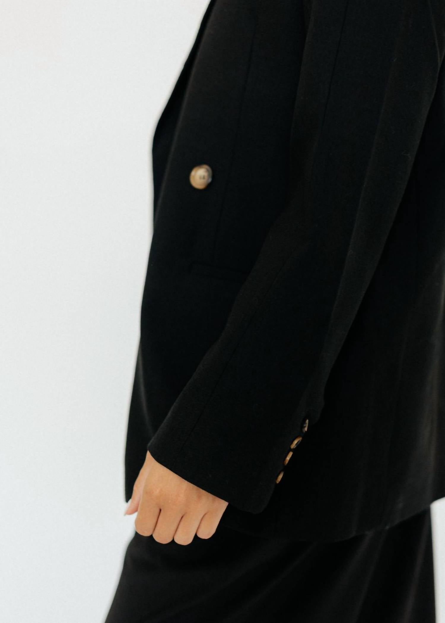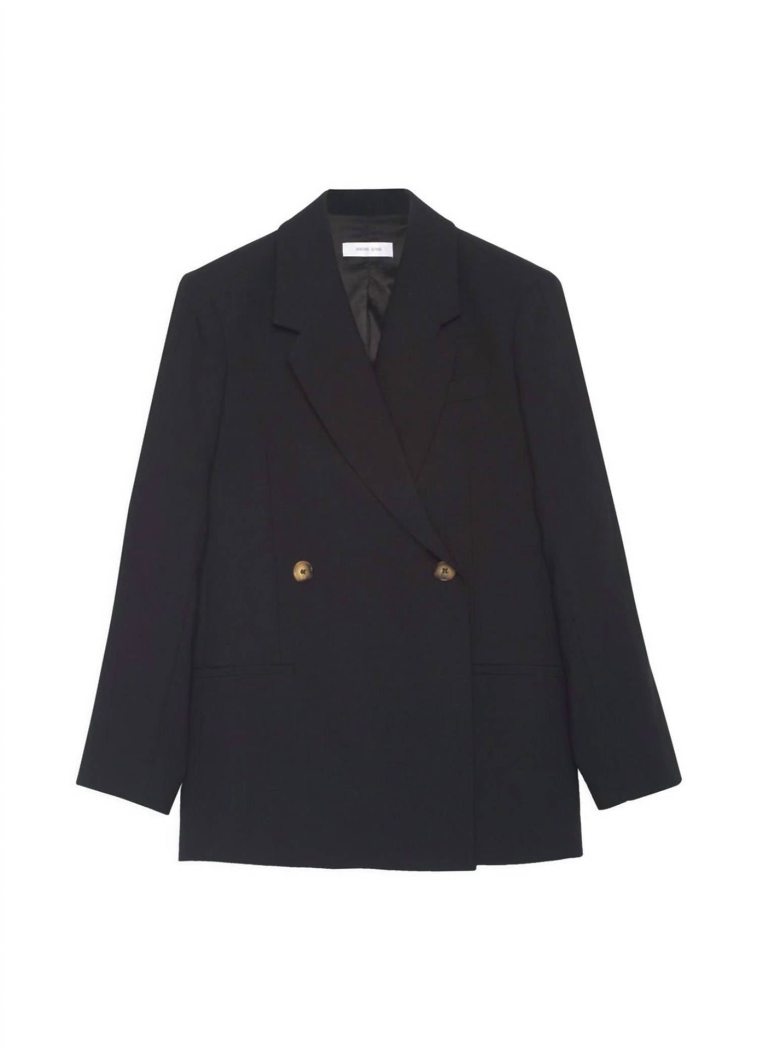 Uma versão elevada do seu blazer clássico favorito. O Blazer Kaia da ANINE BING é uma peça clássica que personifica o estilo despojado com suas mangas longas e uma sofisticada mistura de lã. Confeccionado em 55% poliéster e 45% lã, este blazer preto é fabricado na Turquia e apresenta um amplo fecho de botões duplos para um visual atemporal. O design inclui uma gola elegante e vários bolsos para praticidade, tornando-o perfeito para ocasiões como um jantar. Para maior cuidado, recomenda-se lavar a seco esta peça essencial do vestuário de trabalho, sempre moderna.