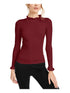 Anne Klein Suéter Feminino Marrom com Babados e Manga Longa Vinho Tamanho XX-S
