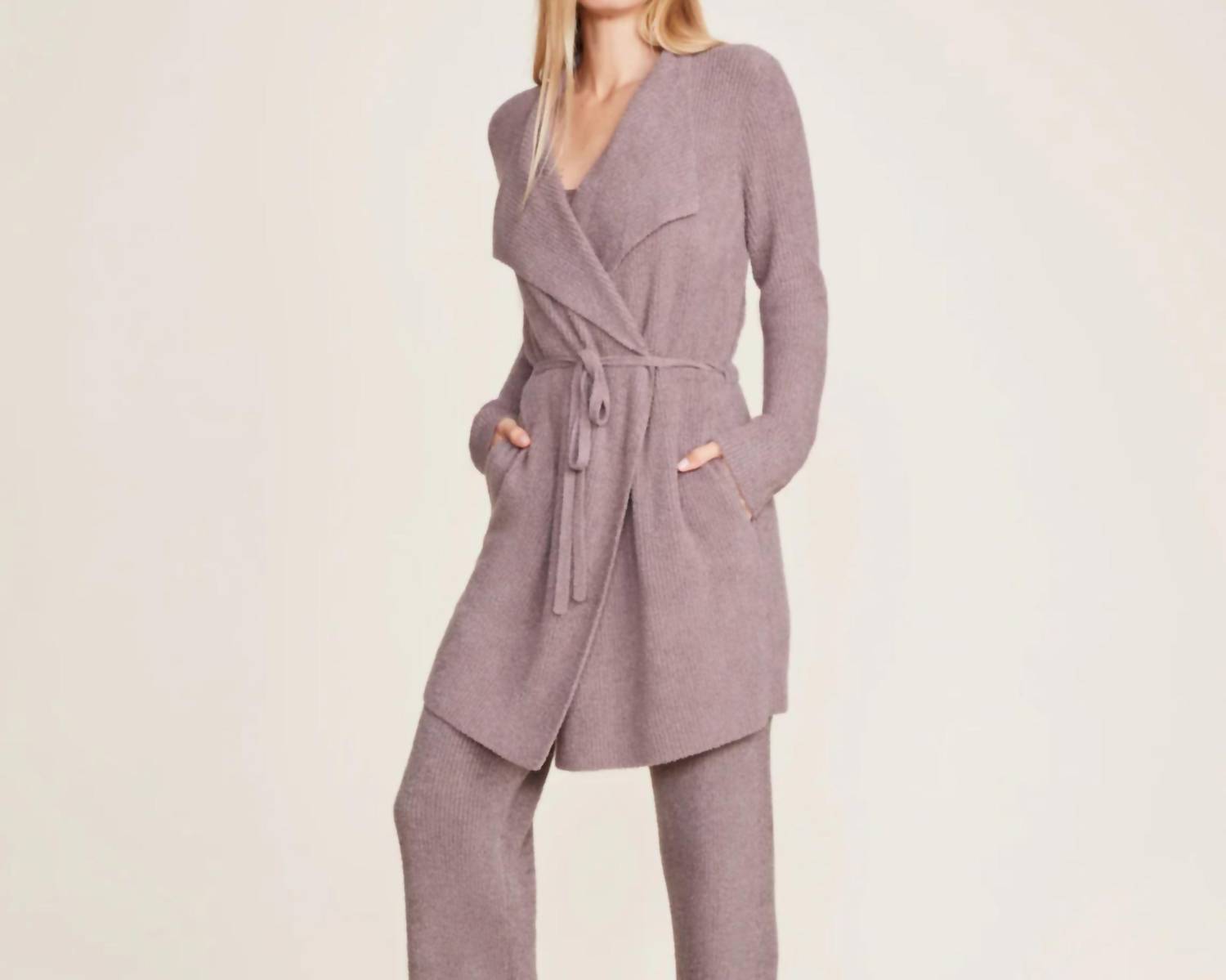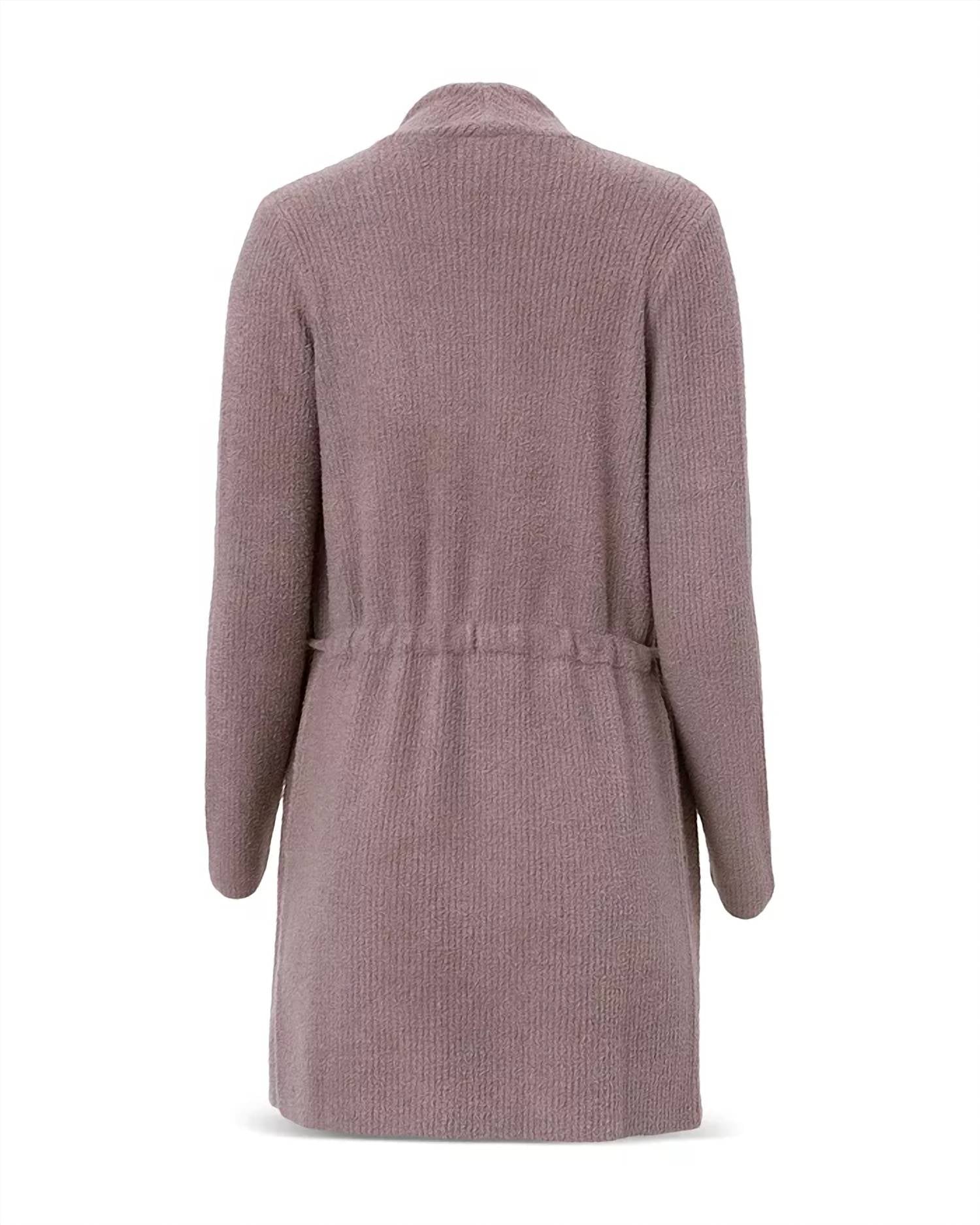 Apresentamos o Cardigan CozyChic Lite Waist Tie da Barefoot Dreams, uma adição chique a qualquer guarda-roupa em uma cor versátil, com textura de madeira flutuante. Este cardigan importado possui mangas longas, confeccionado em uma luxuosa mistura de 75% náilon e 25% rayon para um acabamento texturizado. Com lapela drapeada e fecho de amarração, oferece um comprimento generoso até o meio da coxa e vem com um cinto fino na cintura para flexibilidade no estilo. O cuidado é fácil, com lavagem à máquina em ciclo delicado e opções de secagem na horizontal ou na secadora em temperatura baixa.