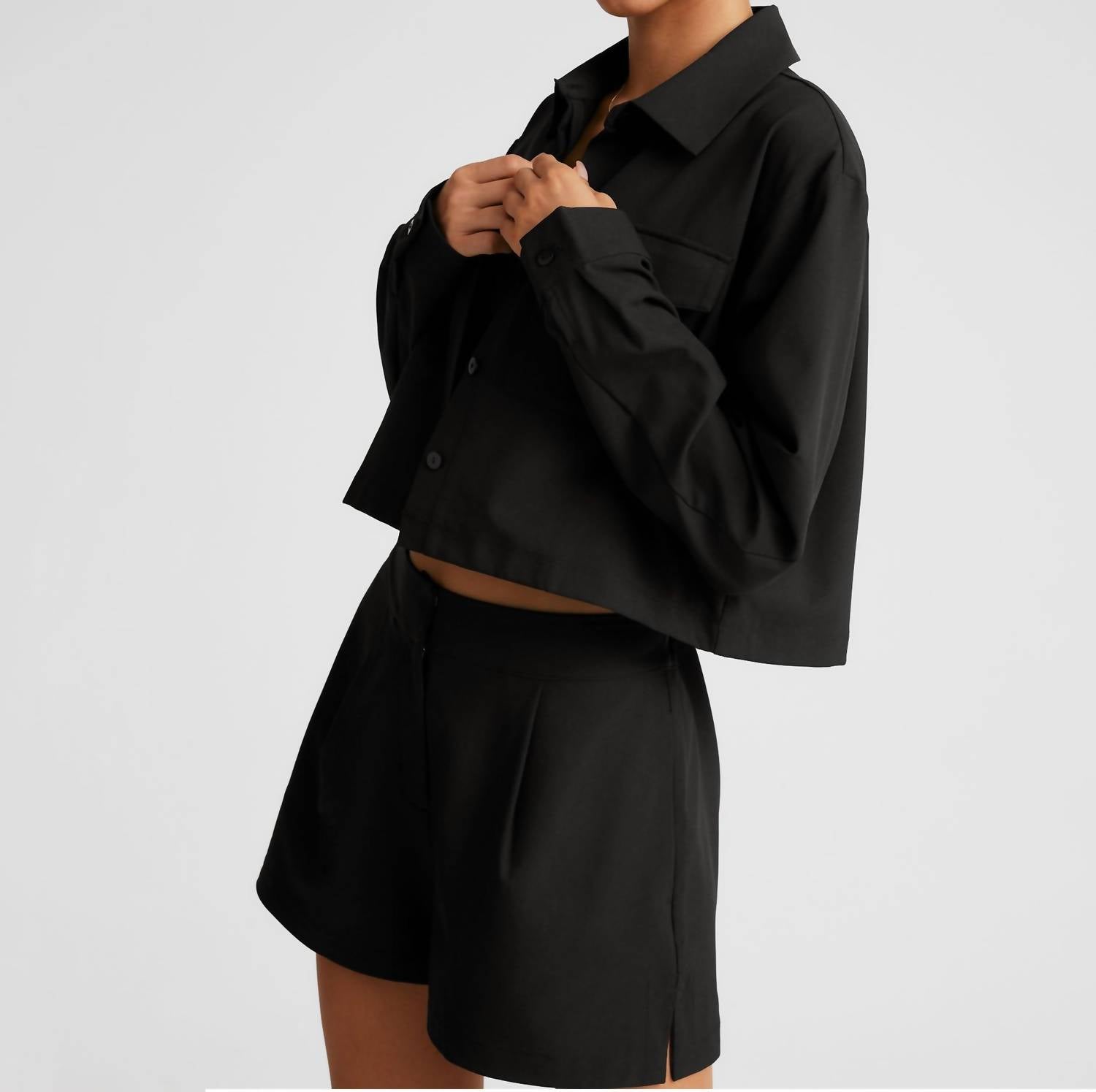 Uma versão elevada do seu blazer clássico favorito. Eleve seu estilo com a Jaqueta Midtown Cropped da BEYOND YOGA, confeccionada com o tecido campeão de vendas JetStretch Woven, para um toque supermacio, leve e fluido. Este blazer preto liso possui mangas longas, gola careca e comprimento cropped, perfeito para adicionar um toque moderno a qualquer look. Com bolsos cargo frontais e fecho de botão na frente e nos punhos, esta jaqueta oferece um caimento solto e descontraído, ideal para transitar facilmente do escritório para um jantar casual. Confeccionada em 100% poliéster, ela valoriza todos os tipos de corpo, tornando-se uma peça versátil para o seu guarda-roupa.