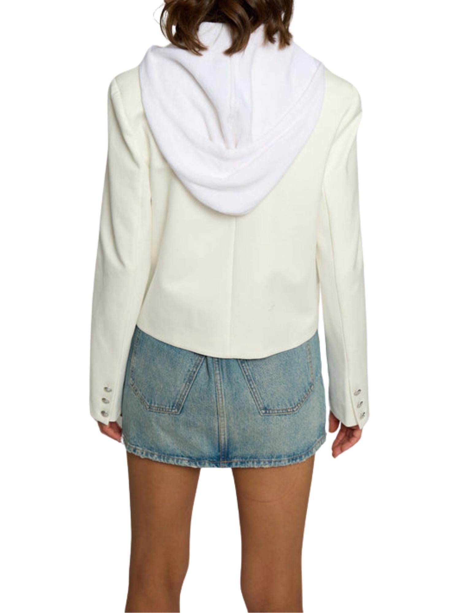 A blazer so versatile you can wear it to the office or pair it with jeans for a more casual look. Elevate your wardrobe with the Cropped Dickey Blazer by Central Park West, tailored for the minimalist enthusiast. This women’s blazer in a solid white features long sleeves and a stylish collar, complemented by a unique drawstring hood. Crafted from a nylon blend (68% Rayon, 27% Nylon, 5% Spandex), it combines elegance with comfort. Closure includes a three-button front and additional dickey zipper, while four patch flap pockets add functionality. Crafted with care, this imported blazer requires dry cleaning for maintenance. Ideal for spring engagements and Fourth of July celebrations.