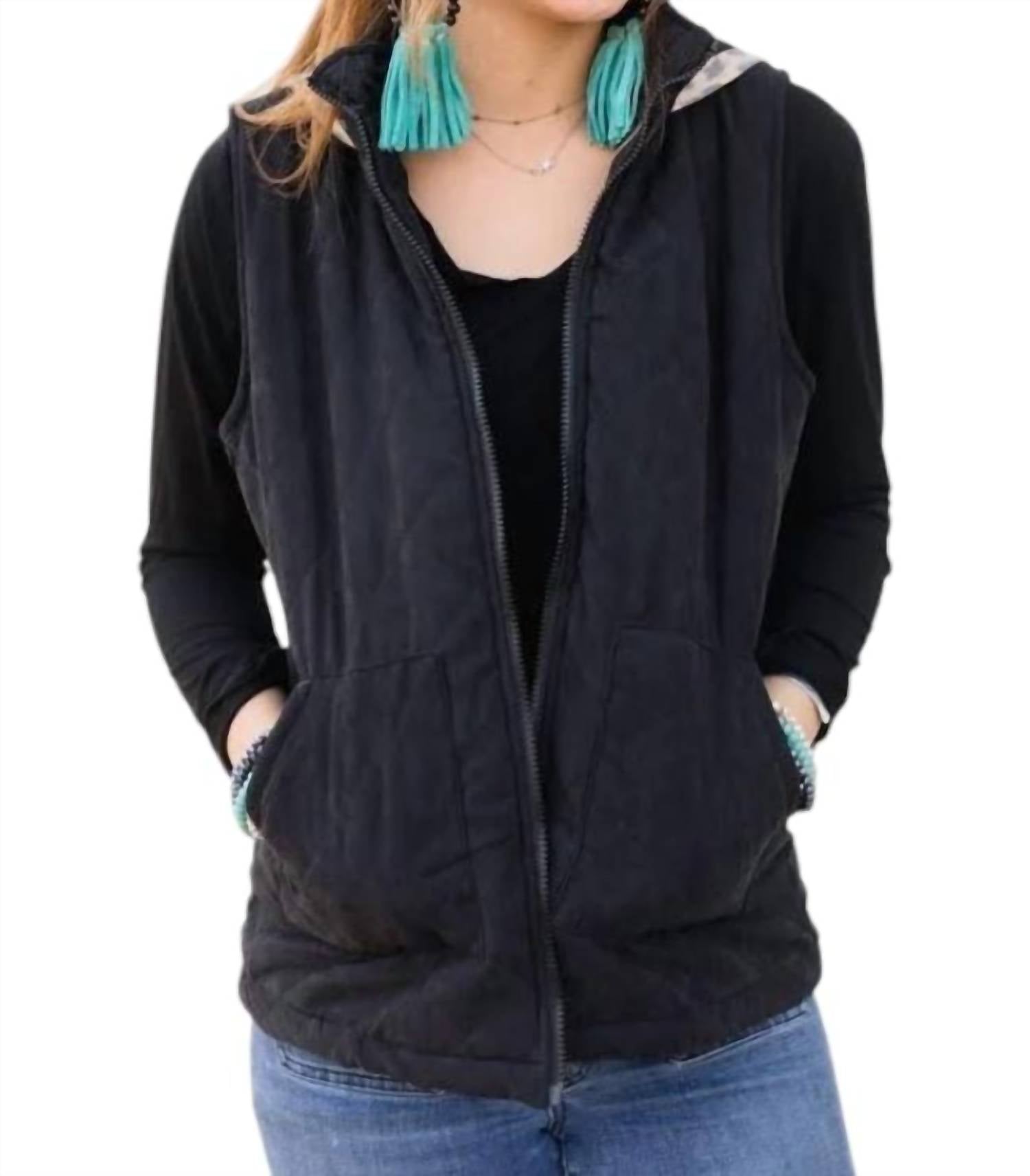 Elegante, preto e elegante, projetado para conforto e funcionalidade. O colete sem mangas apresenta um padrão texturizado com fecho de zíper prático e bolsos para maior praticidade. O estilo de gola redonda adiciona um toque clássico. Fácil de cuidar, com instruções de lavagem à máquina.