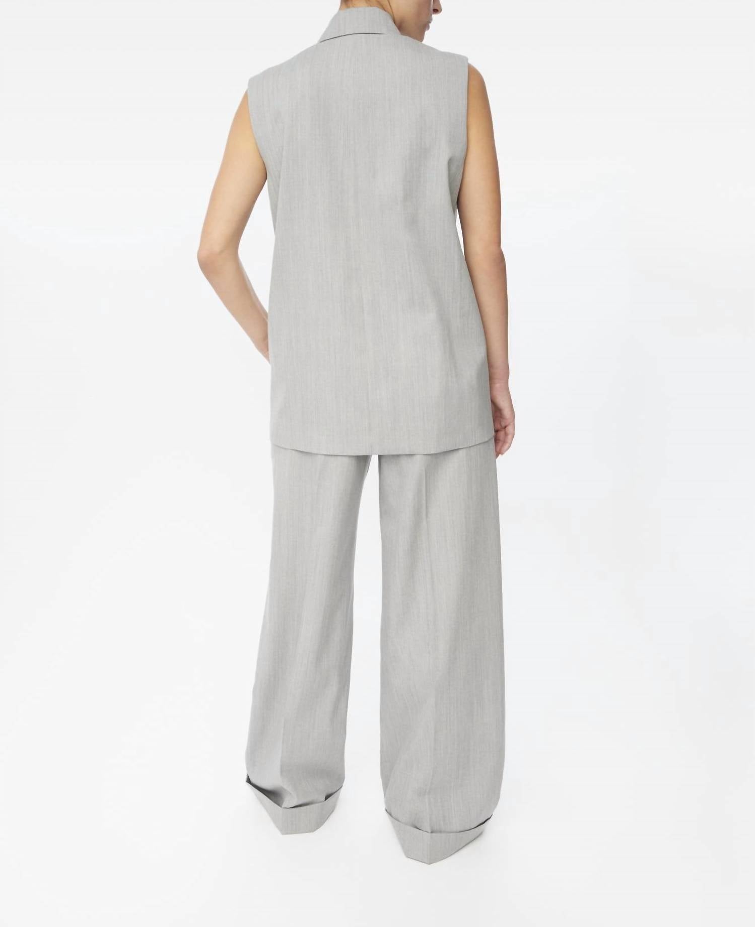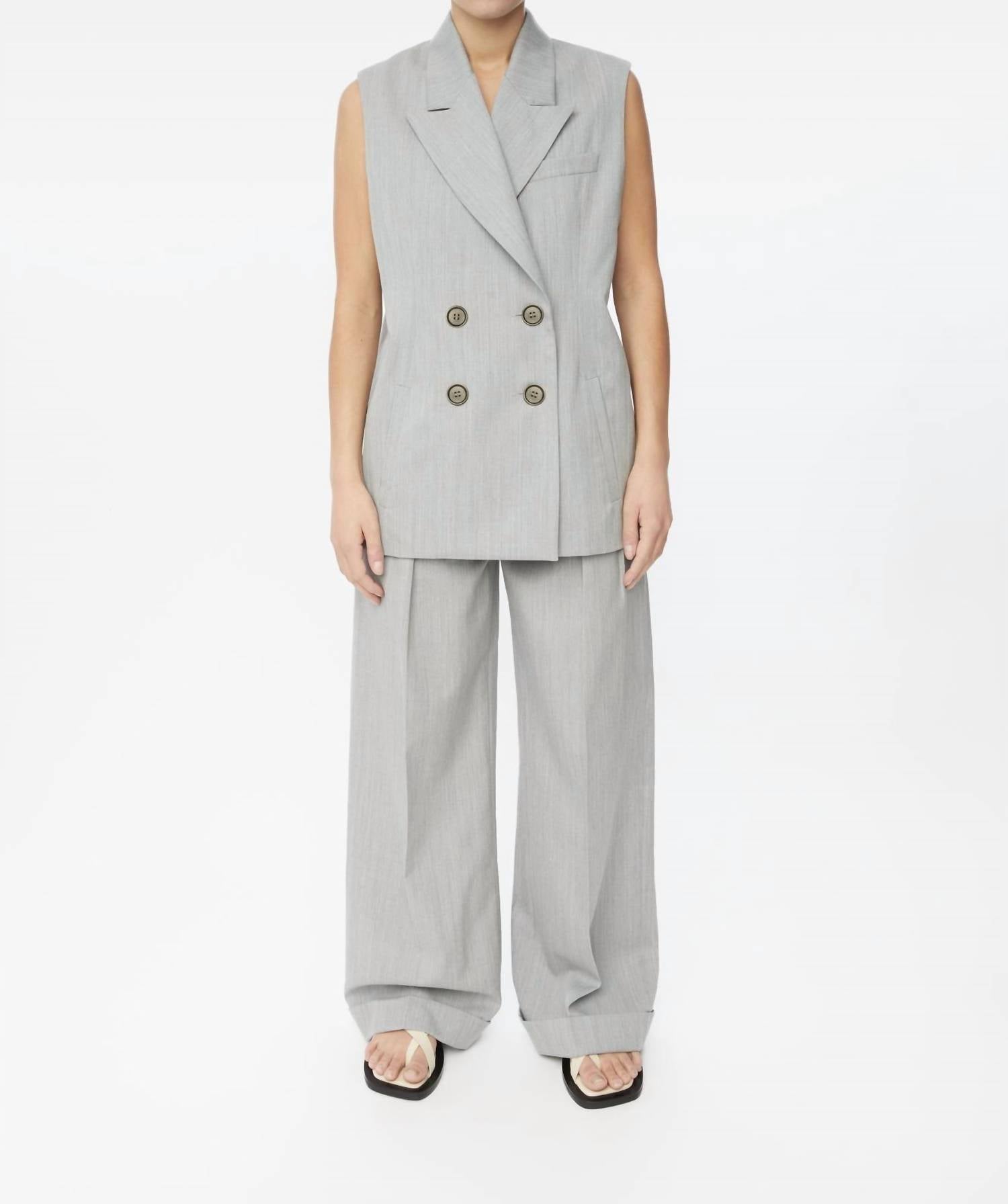 Apresentamos o Colete Trespassado Duplo da Dāl the Label, uma escolha refinada para a mulher moderna. Em um cinza claro sofisticado, este colete sem mangas é confeccionado em uma luxuosa mistura de lã, oferecendo uma silhueta estruturada que acentua perfeitamente um guarda-roupa cápsula. O fechamento é feito com um elegante botão corozo. Os cuidados são simplificados com instruções de lavagem a seco, tornando-o um complemento prático e elegante para sua coleção de roupas de trabalho de primavera.