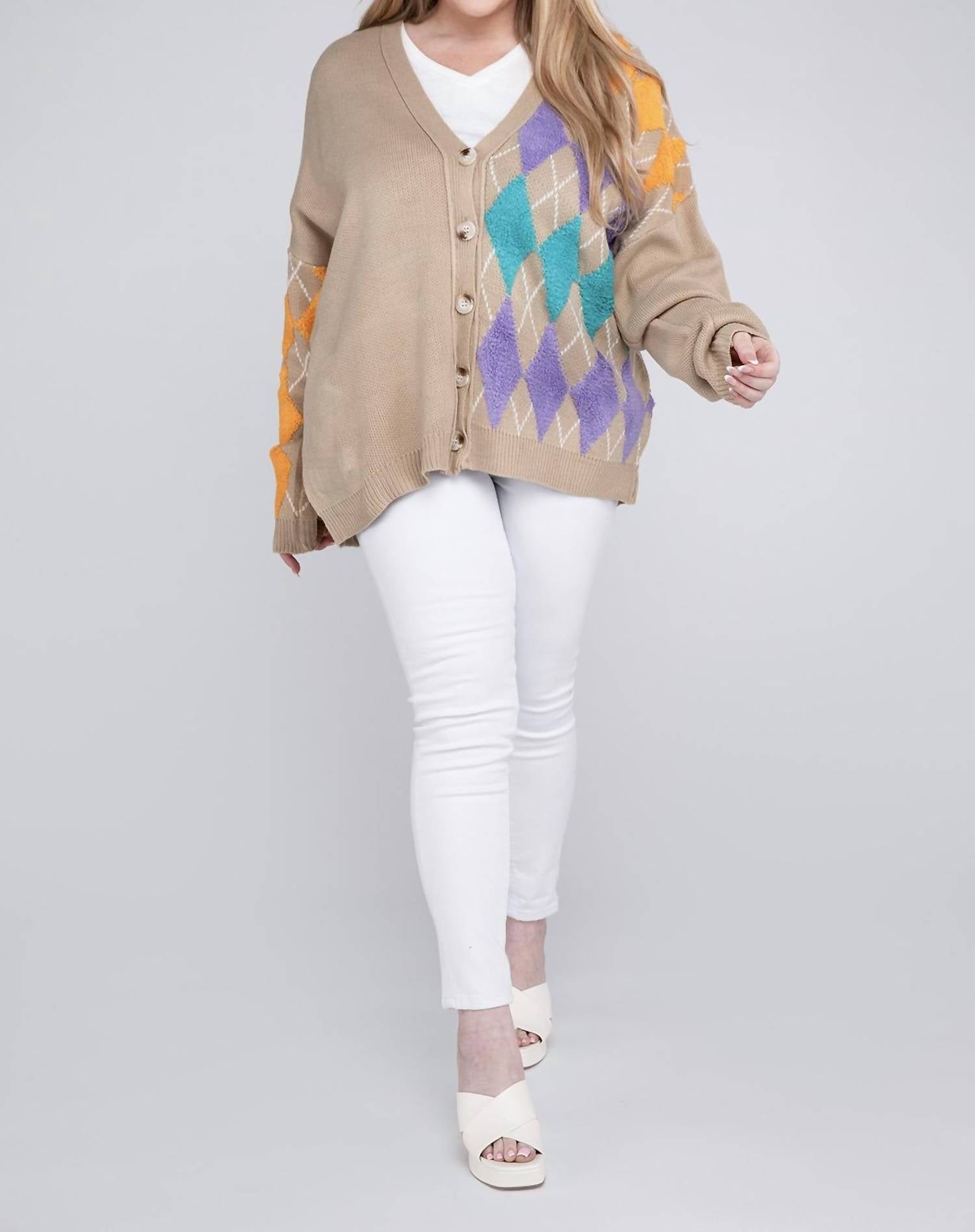 Um ajuste clássico que funciona tão bem abotoado quanto aberto. Apresentamos o Cardigan Plus com Gola V e Botões Frontais da DAVI & DANI, onde o conforto encontra o charme atemporal em uma estampa multicolorida. Este cardigan de manga comprida oferece um caimento solto com decote em V e fecho de botão, além de bolsos práticos para maior praticidade. Confeccionado em 100% acrílico, ele foi desenvolvido para um estilo despojado e aconchegante. As instruções de cuidado incluem lavagem à máquina e secagem em tambor para fácil manutenção. Fabricado na China.