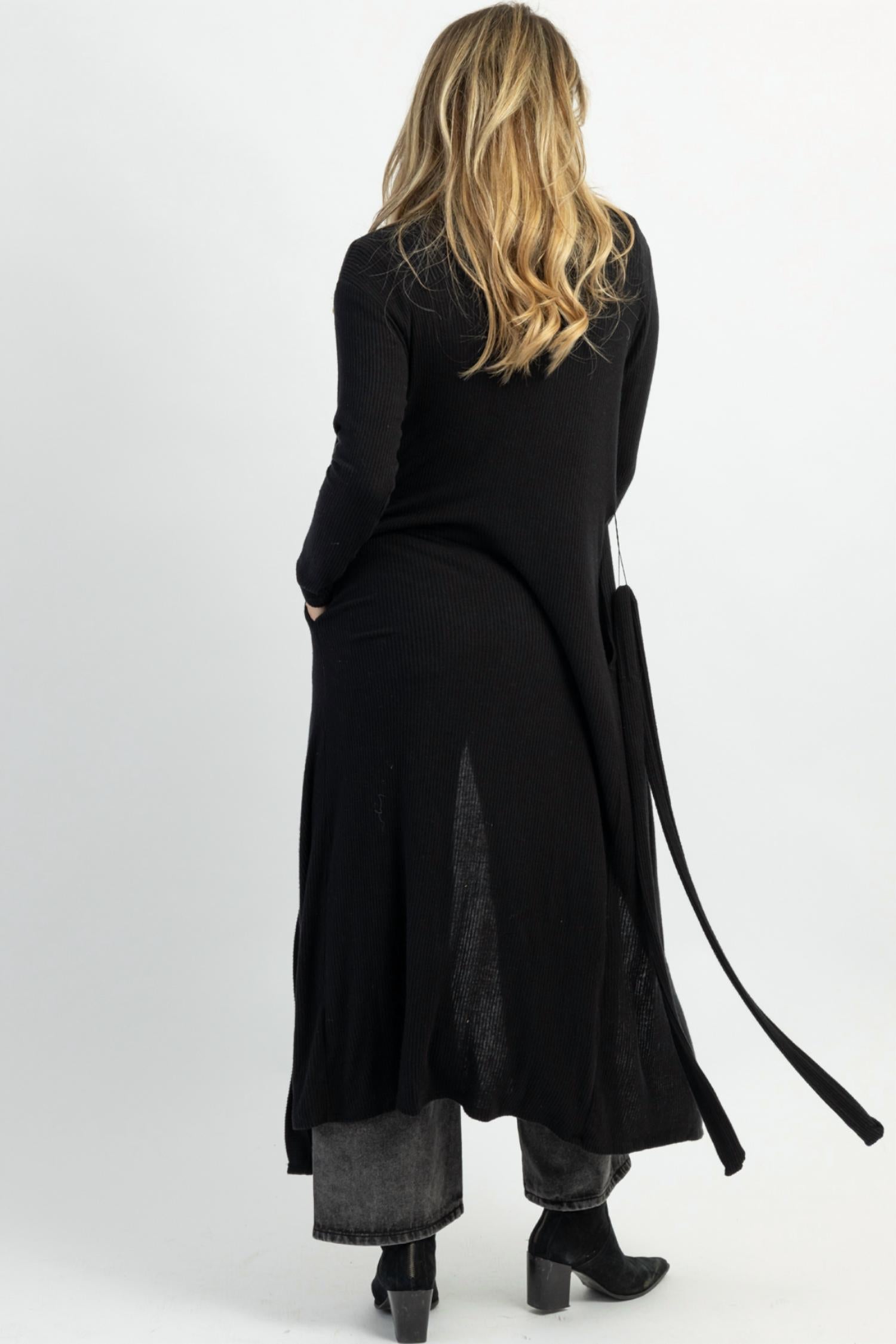 Este cardigan será um favorito para usar em rodízio de suéteres. Mangas compridas, caneladas, comprimento midi-maxi longo, amarração na cintura, leve para usar em camadas. 100% algodão. A modelo tem 1,73 m de altura e o vestido é tamanho 2.