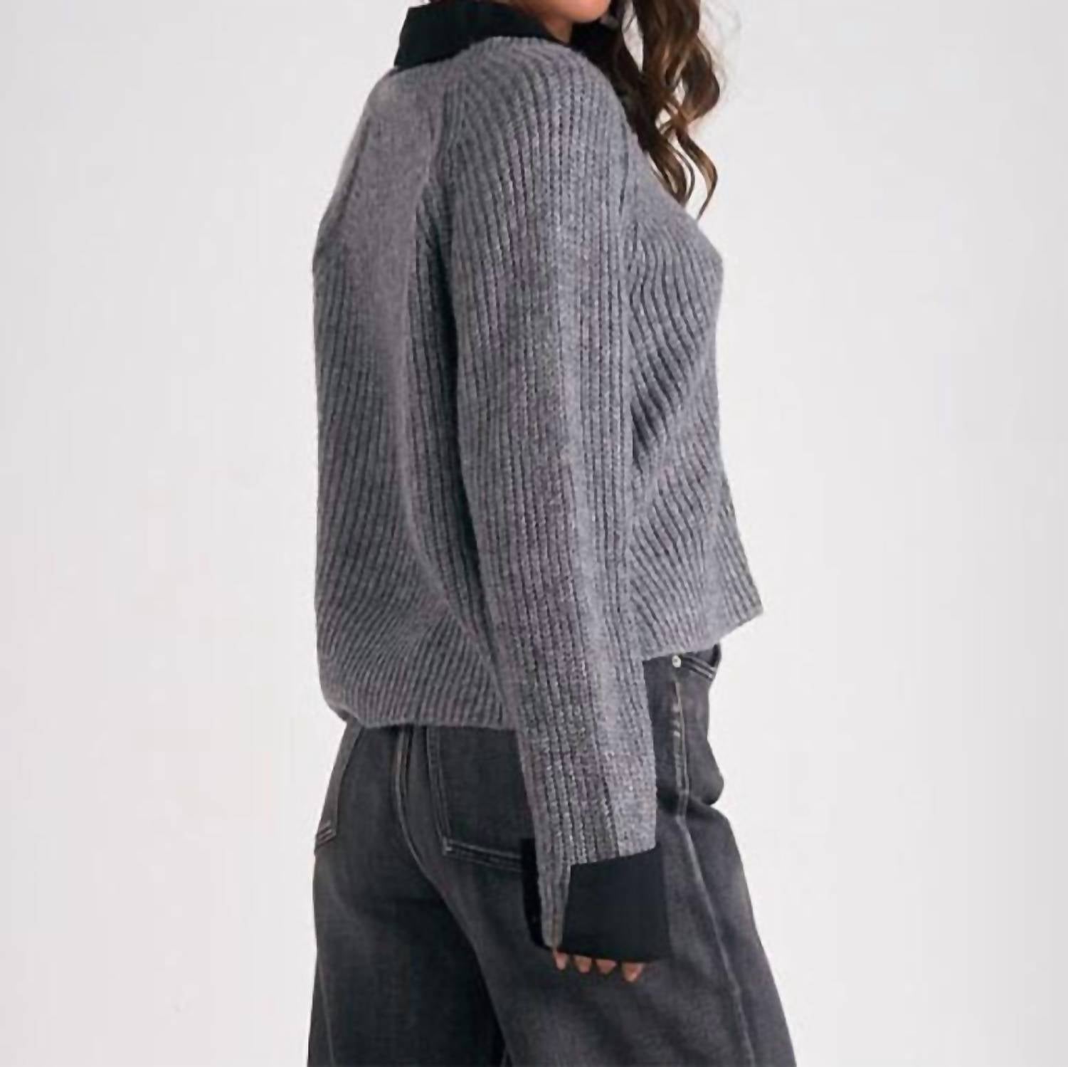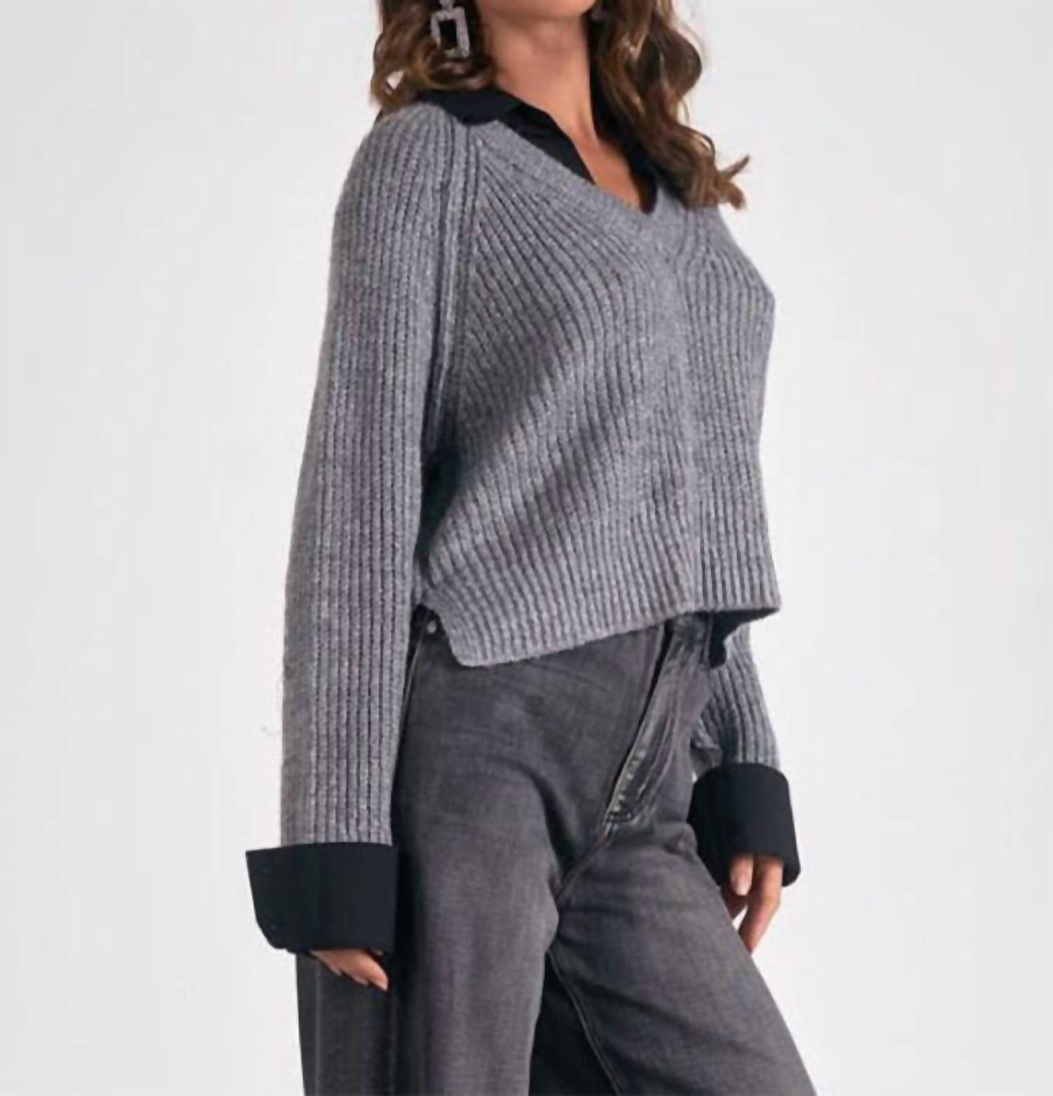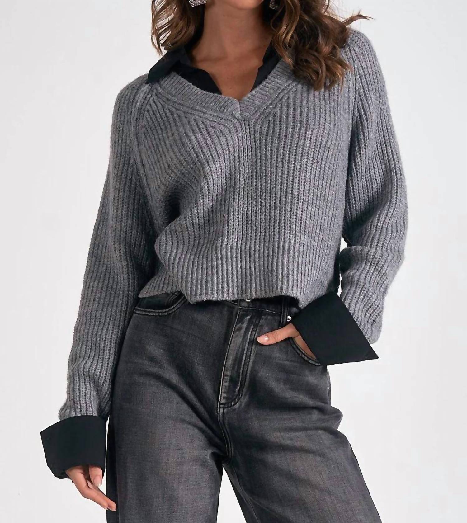 Um ajuste clássico que funciona tão bem abotoado quanto aberto. Apresentamos o suéter Elan Olivia, uma adição chique ao seu guarda-roupa que combina estilo e conforto sem esforço. Este pulôver feminino com listras clássicas em cinza e preto possui mangas compridas, gola sofisticada e decote em V profundo para um visual elegante. Seu design canelado e bainha levemente cropped oferecem um caimento relaxado, tornando-o perfeito para qualquer ocasião. Fechamento: Puxe para vestir.