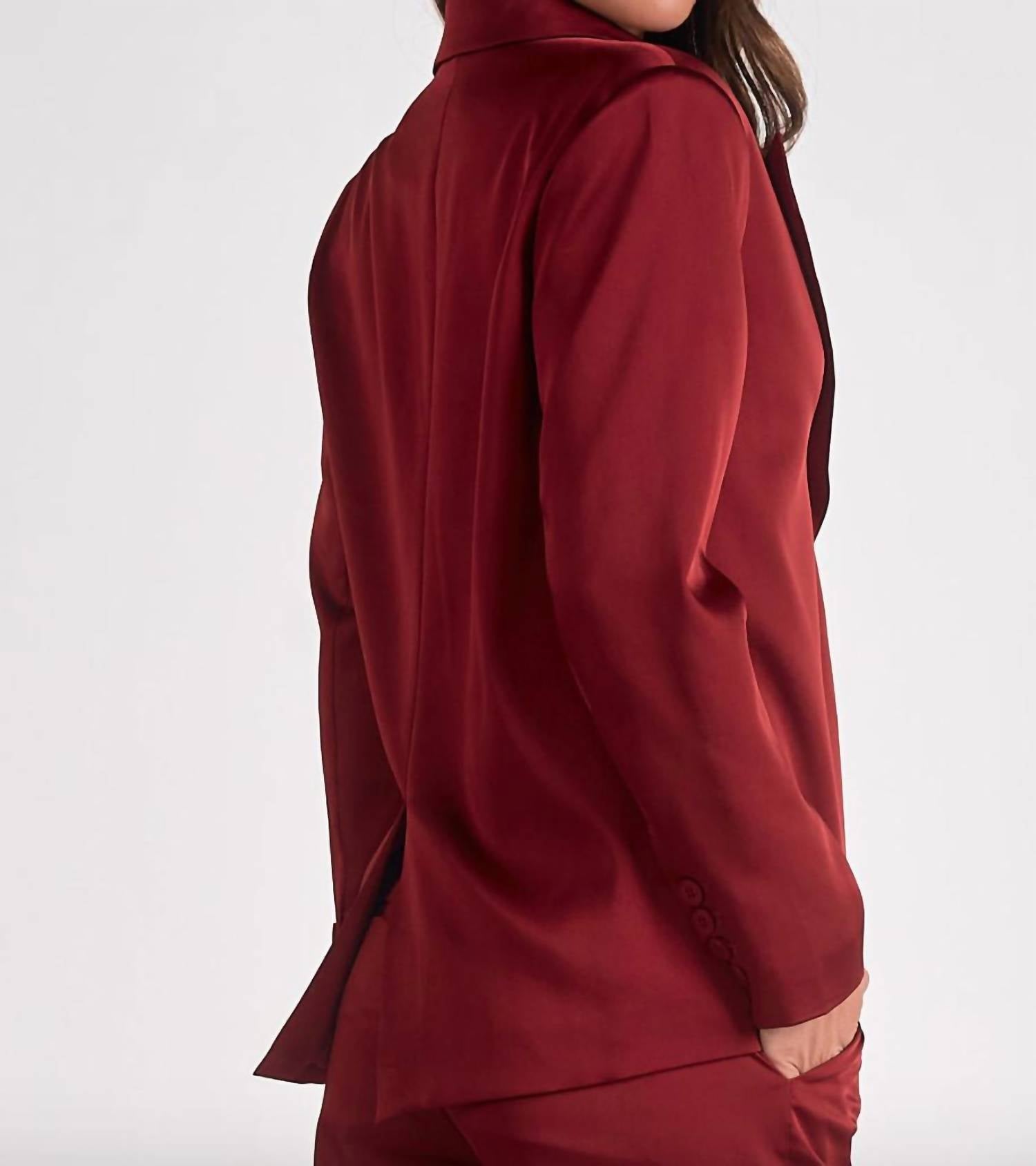 Eleve seu guarda-roupa de trabalho com o Blazer de Manga Longa em Cetim ELAN na elegante cor vinho, perfeito para eventos noturnos. Este blazer de estampa lisa apresenta uma gola clássica e foi projetado para um visual elegante e elegante, sem bolsos. Fechamento: Botão. Ideal para a primavera, esta peça complementa facilmente qualquer conjunto sofisticado.