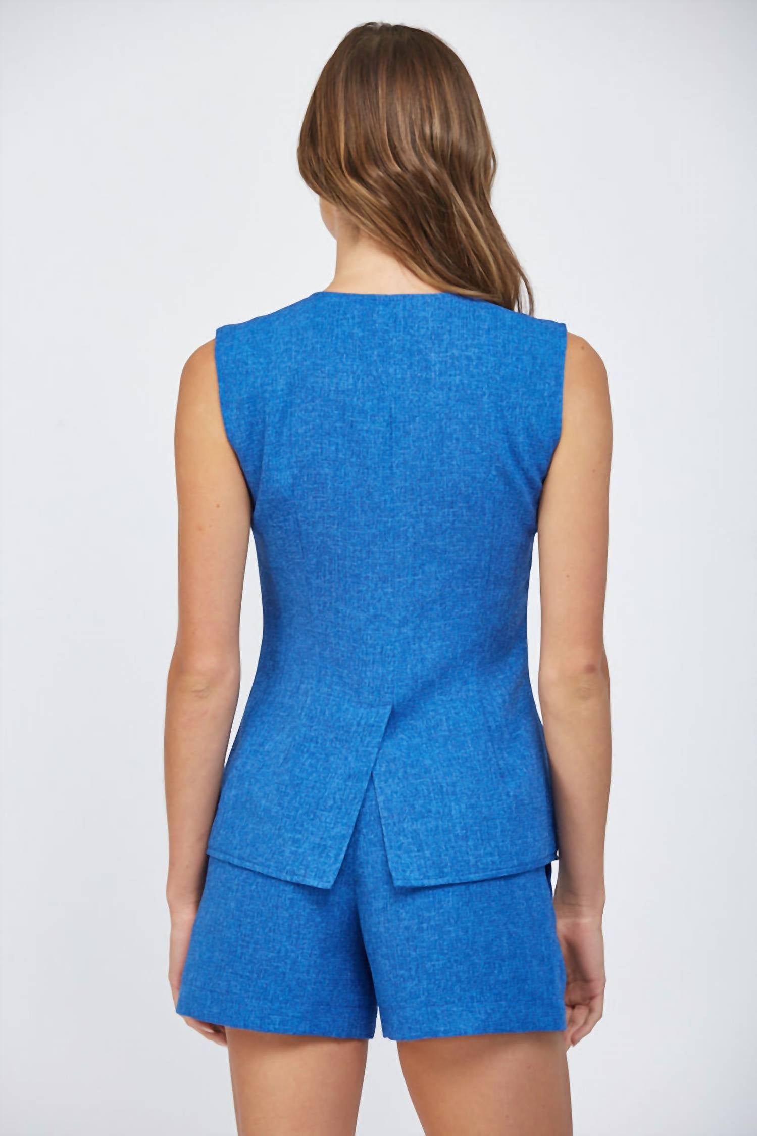 Aquela peça extra que você não sabia que precisava! Este colete com bainha frontal recortada apresenta detalhes elegantes de botões para um visual personalizado. Feito de 100% poliéster, tanto na parte externa quanto no forro, oferece um ajuste estruturado e confortável. A modelo tem 1,75 m de altura.