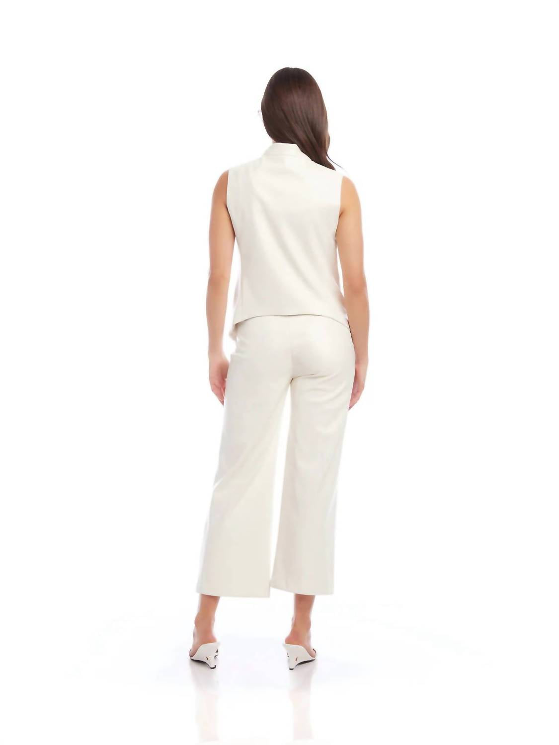 Uma versão elevada do seu blazer clássico favorito. Eleve seu look com o Colete de Couro Sintético da Fifteen Twenty, uma peça chique em off-white que combina perfeitamente o charme moderno com o charme vintage. Este colete sem mangas possui decote em V e é confeccionado em couro sintético macio, composto por 100% poliuretano, para um visual luxuoso. O colete inclui bolsos frontais com fenda completa e um fecho de botão turquesa vintage de destaque. Comprimento: 52 cm. Origem: Importado. Cuidados: Lavar à mão com água fria e secar no varal; não lavar a seco.