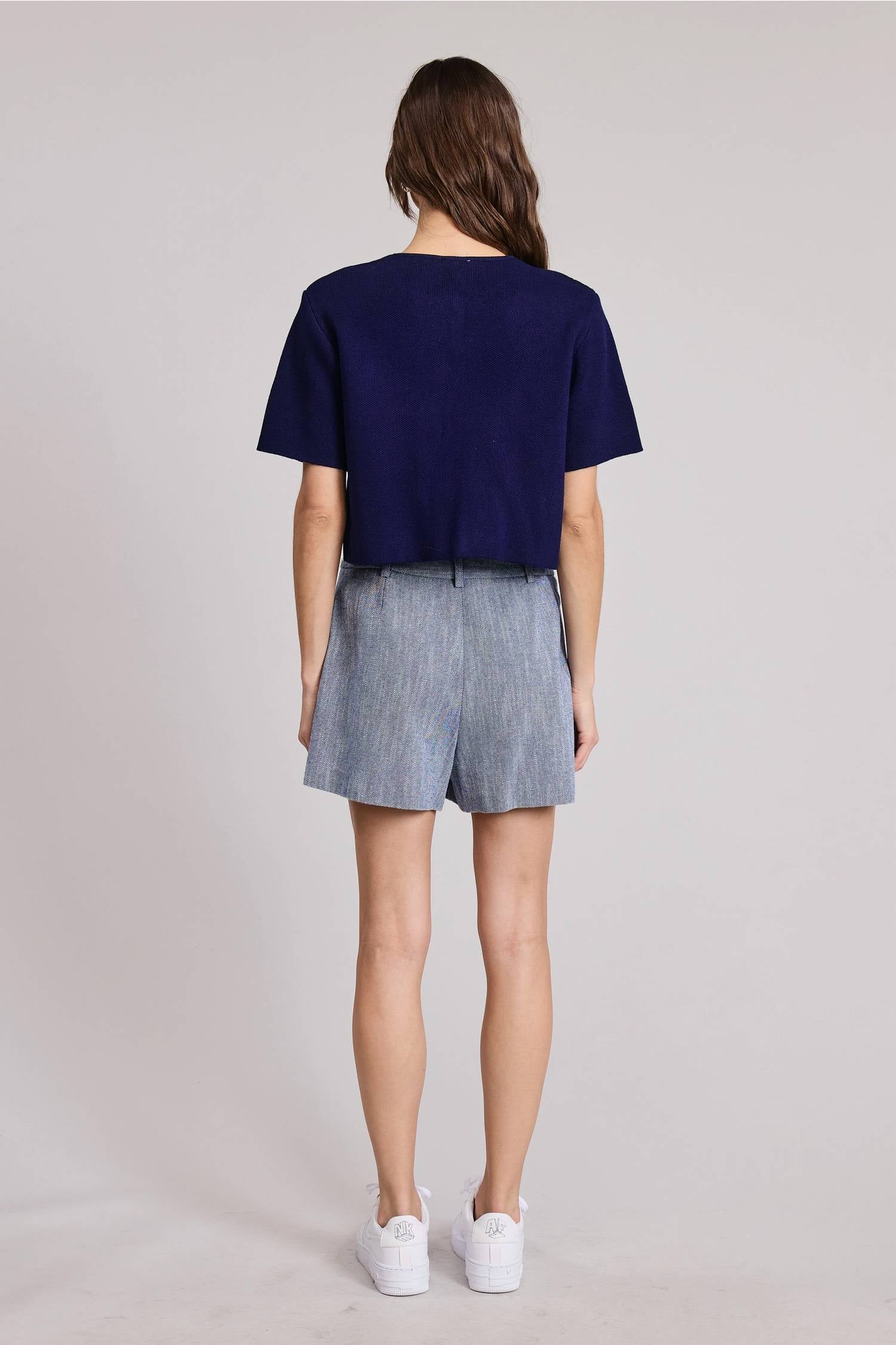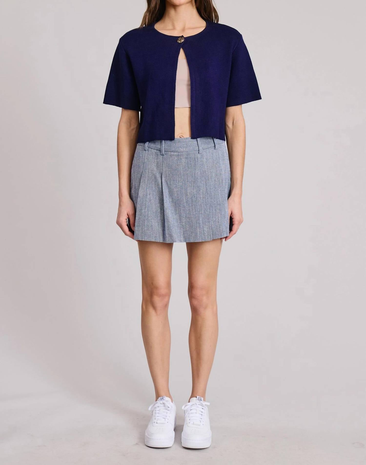 Este cardigan será um favorito para usar em rodízio de suéteres. Conheça o Cardigan Angela Sweater da FLAT WHITE, uma escolha sofisticada para ocasiões de verão. Este cardigan azul-marinho com estampa lisa apresenta mangas curtas e gola redonda clássica. Seu fecho de botão oferece elegância e versatilidade. Perfeito para celebrar momentos como o Dia de Ação de Graças e noivados.