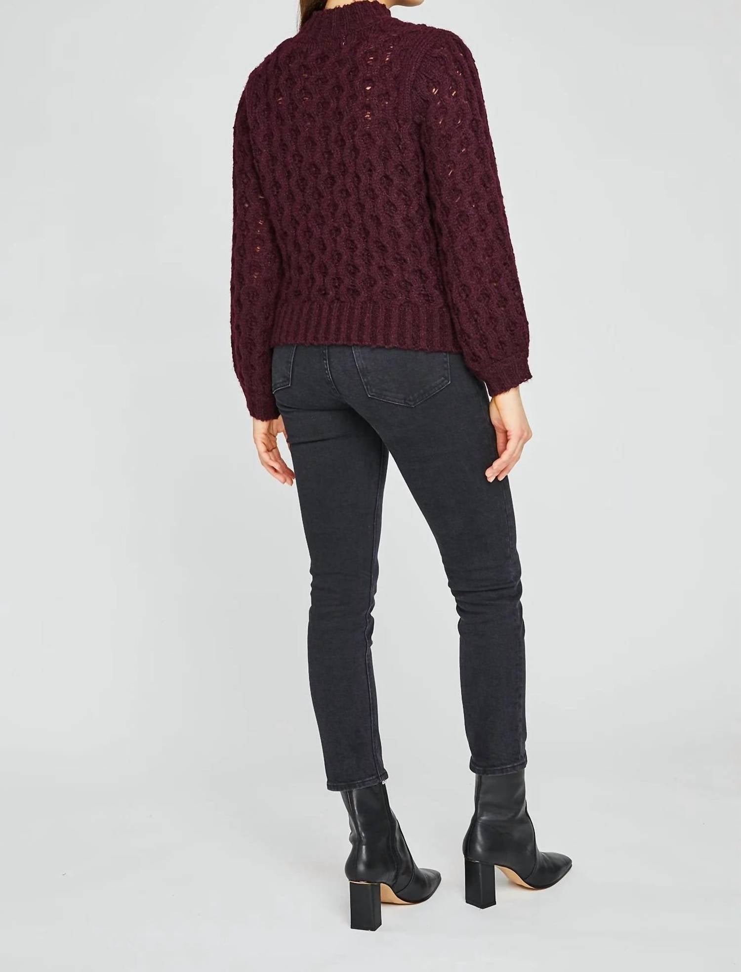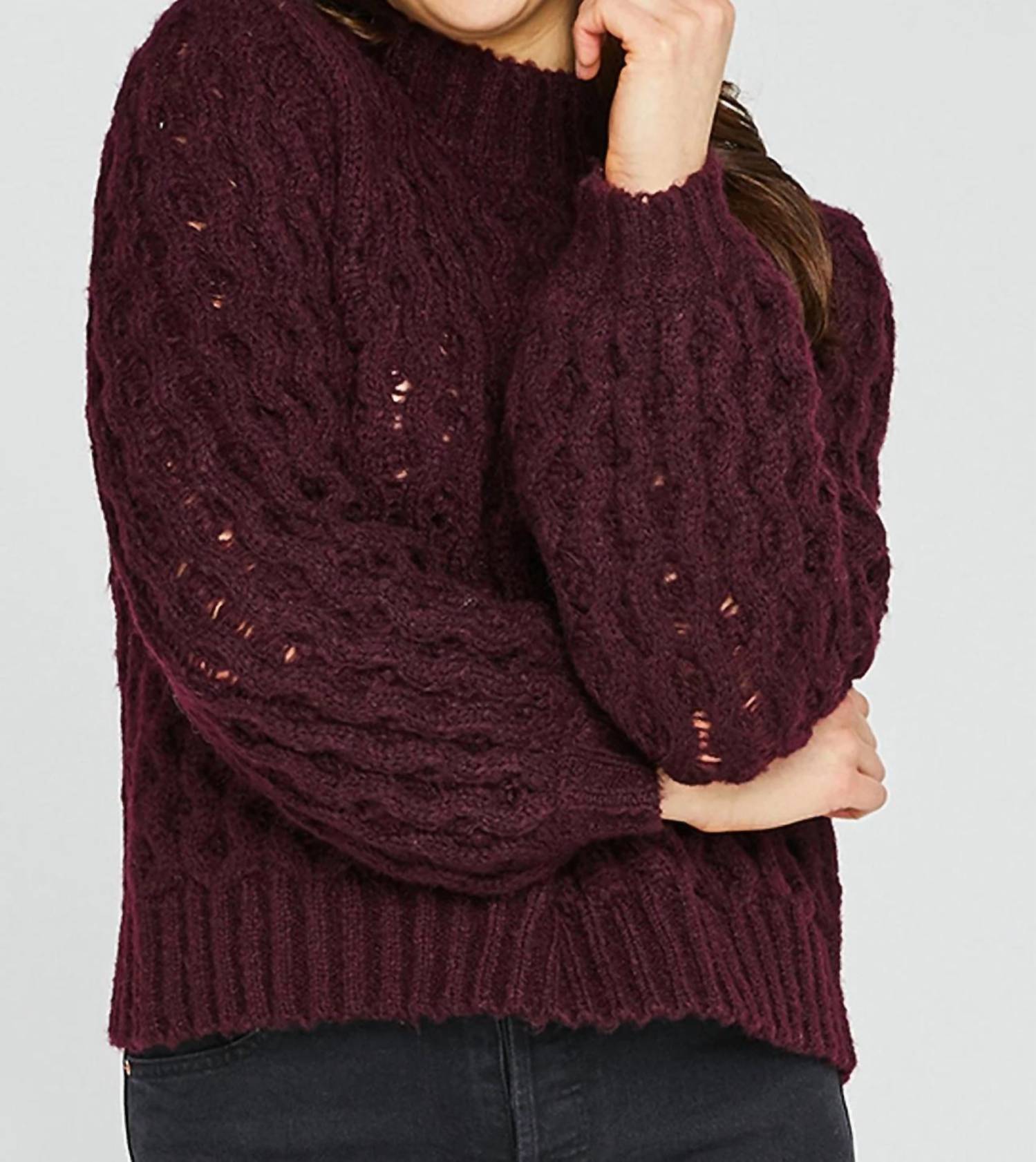 O suéter Saturn da Gentle Fawn, na elegante cor Rum, apresenta um padrão diferenciado de pontos em formato de favo de mel para maior textura e dimensão. Esta peça de manga comprida é meticulosamente confeccionada em 100% poliéster e possui um elegante decote falso e mangas bufantes para um visual chique e despojado. Desenvolvido com base no compromisso com a qualidade, este cardigan feminino foi desenvolvido para ser um suéter confortável, sem bolsos, e combina com seu guarda-roupa de viagem de outono. Para cuidar desta peça atemporal, lave-a à mão em água fria e deixe-a secar na horizontal.