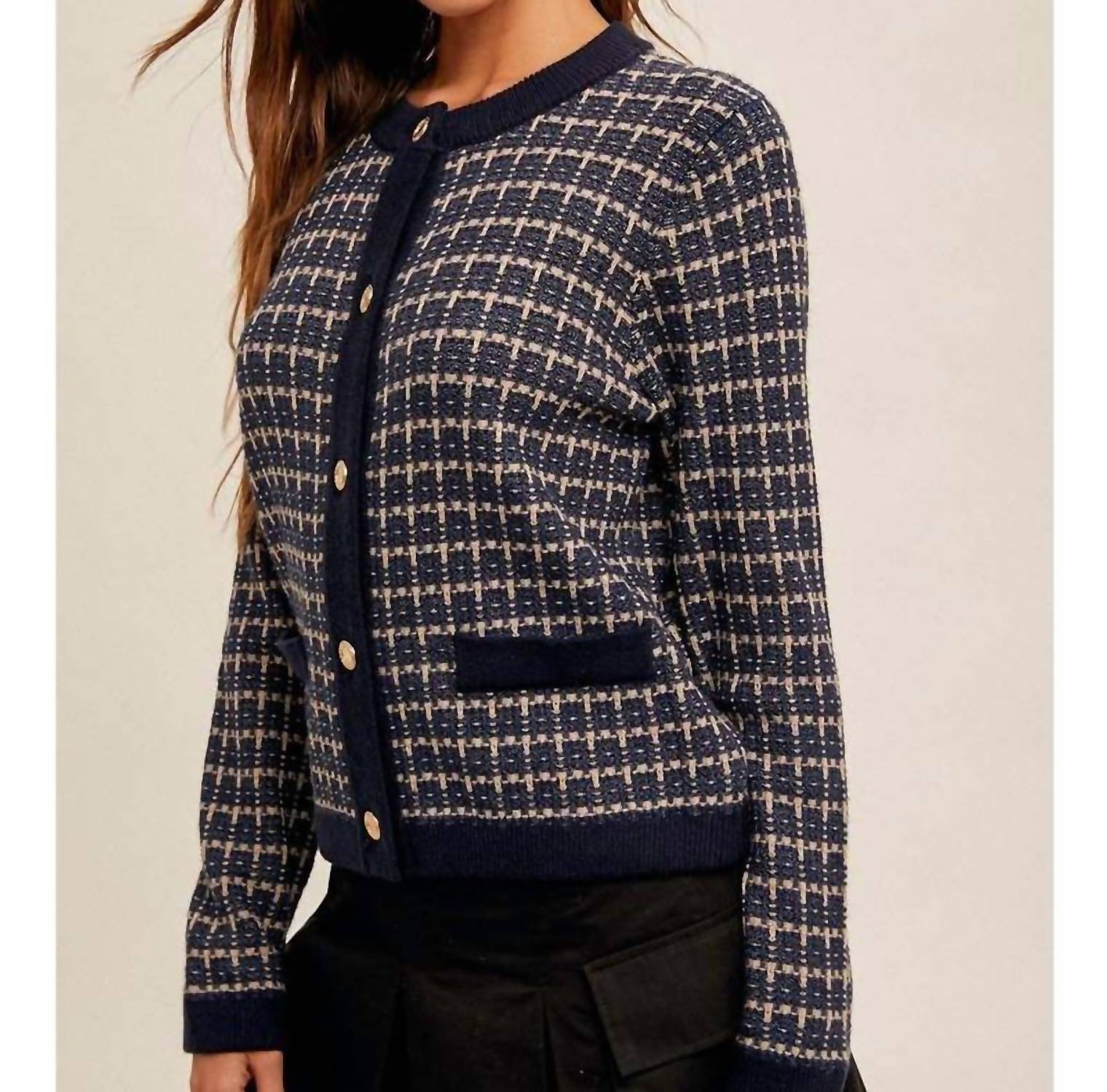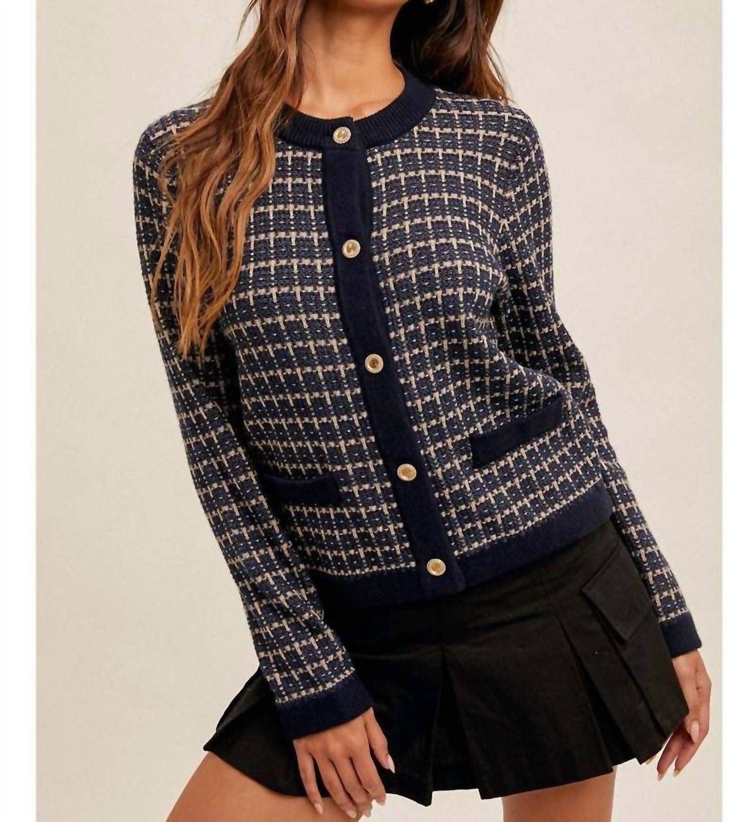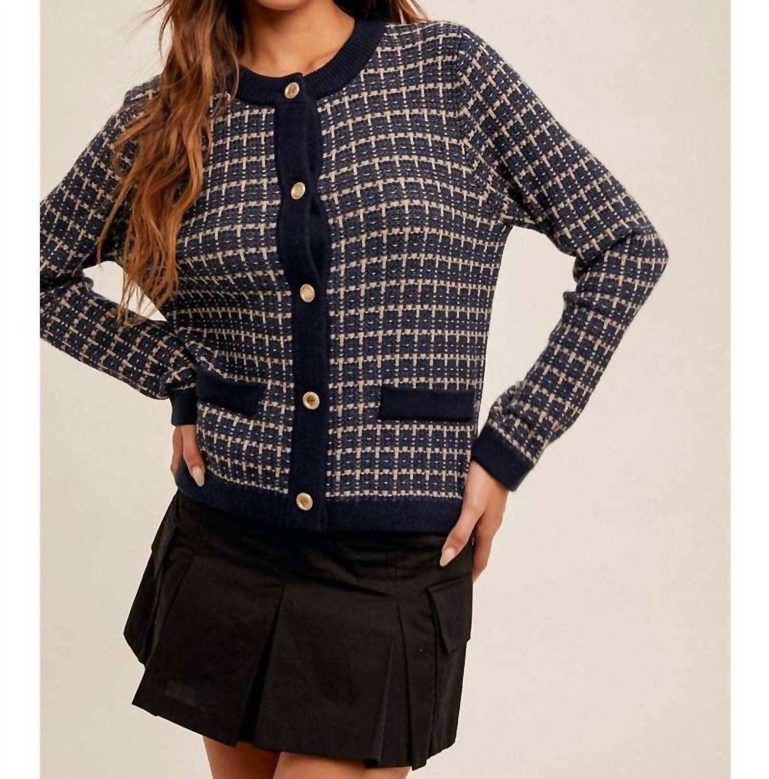 Use este adorável cardigan sobre qualquer camisola ou regata. Eleve seu guarda-roupa com o Cardigan Juno Tweed da Hem & Thread, uma peça estilosa em um sofisticado tom azul-marinho. Este cardigan de manga comprida e gola redonda apresenta um design estampado e bolsos práticos, oferecendo estilo e funcionalidade. Confeccionado em uma mistura de viscose de alta qualidade composta por 45% viscose, 28% poliéster e 27% náilon, possui um fecho clássico de botão. Consulte a etiqueta de cuidados da peça para obter instruções específicas de lavagem e secagem.